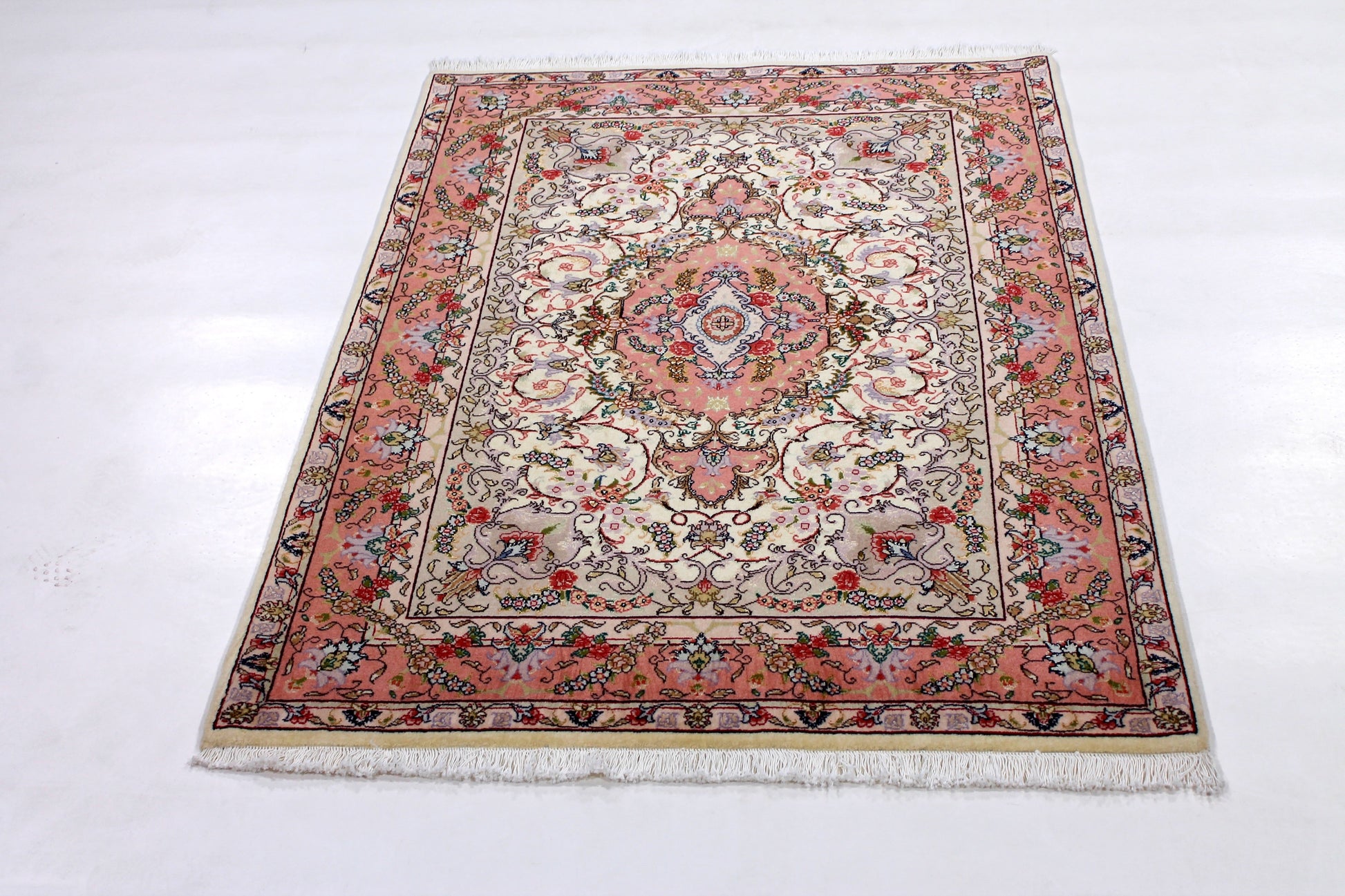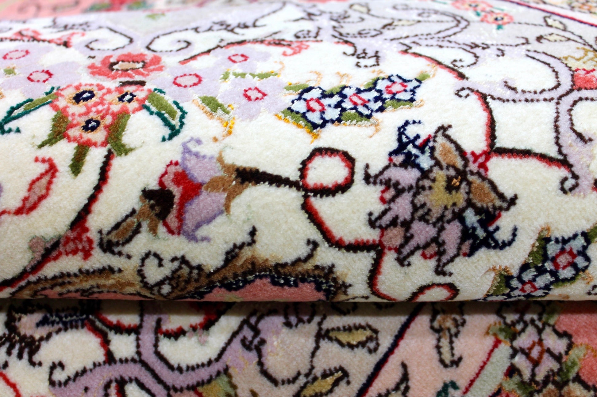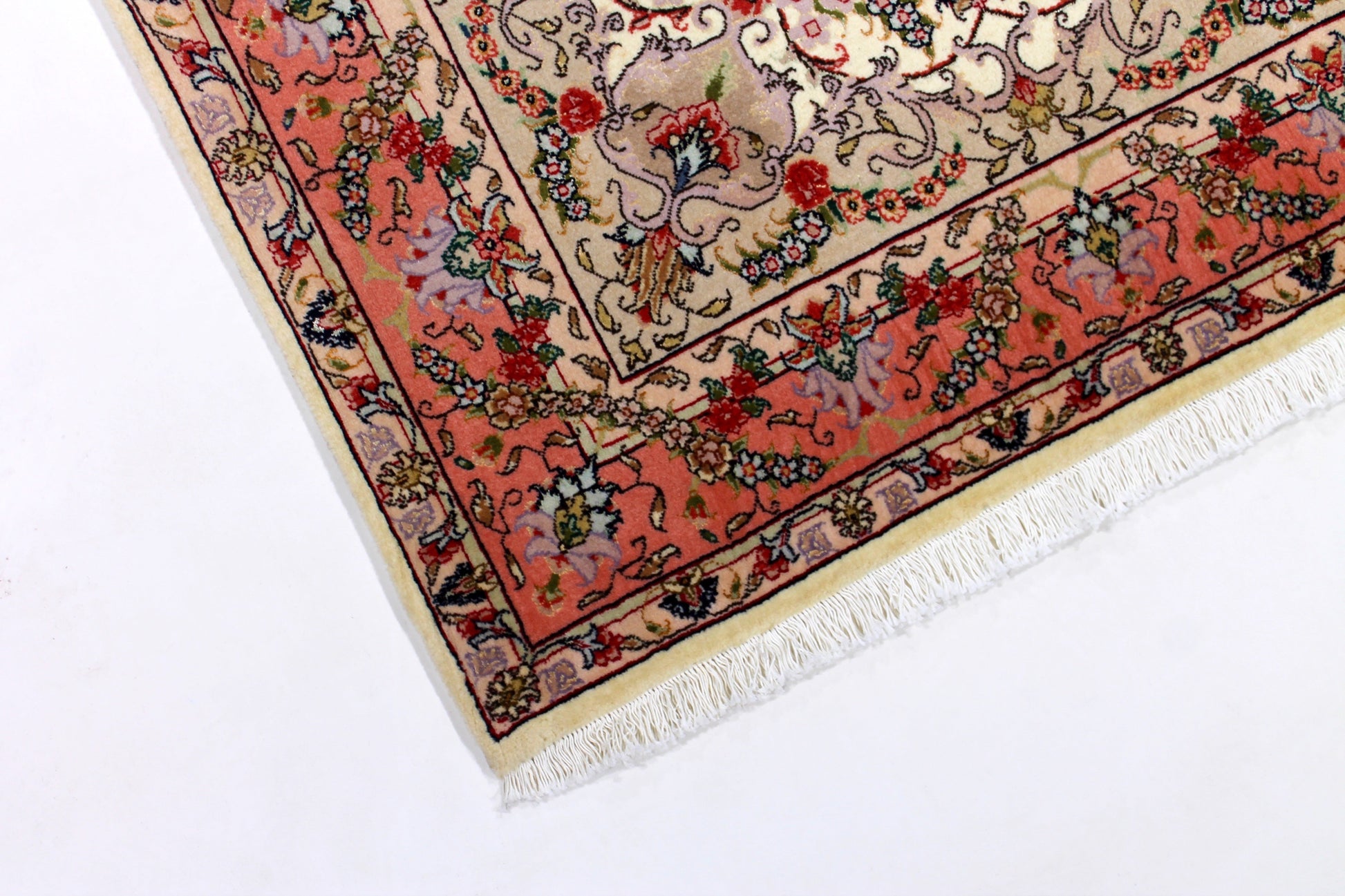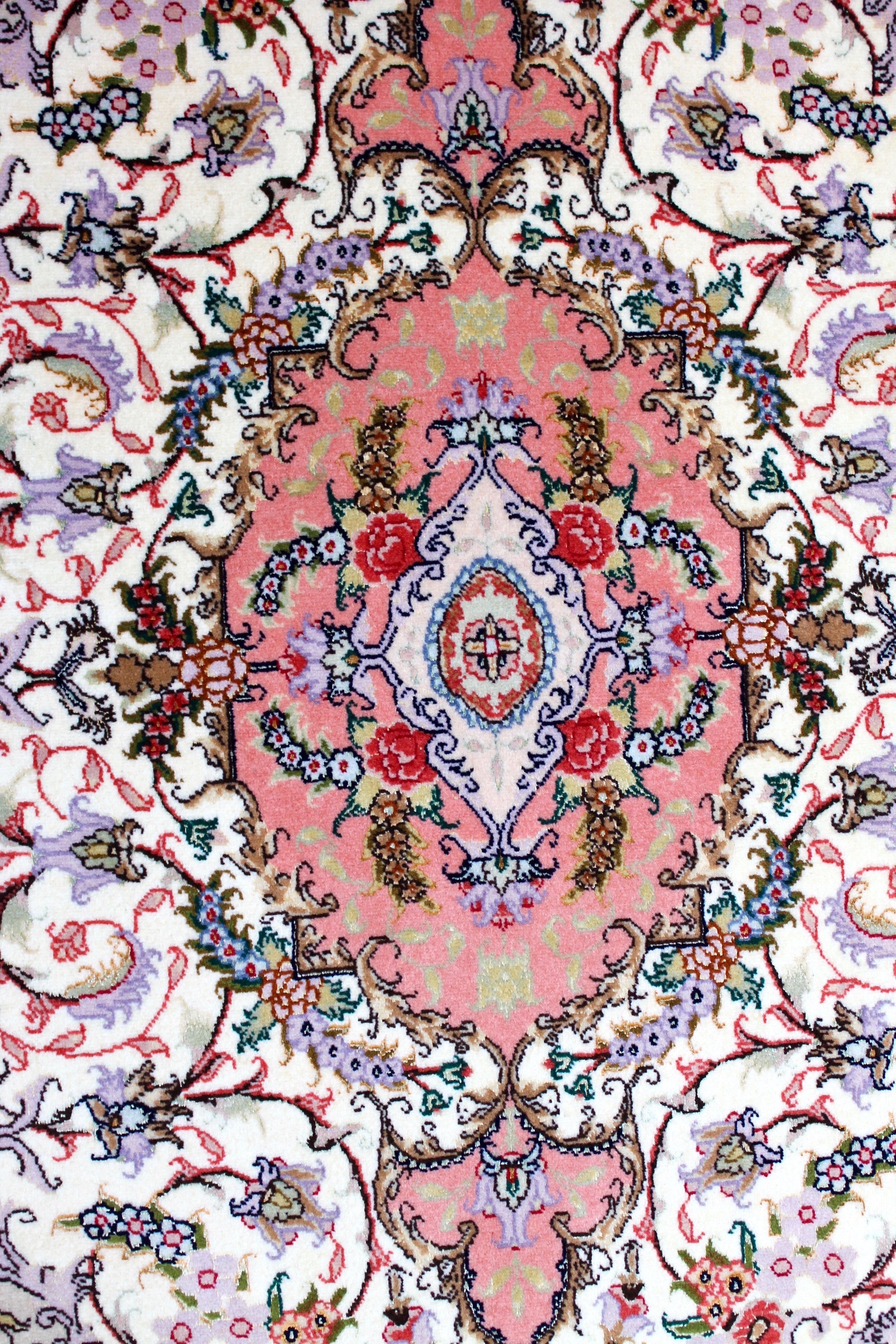 Dieser Perserteppich aus Täbriz wurde aus hochwertiger Schafwolle von Hand geknüpft. Sie ist das am häufigsten verwendete Material in der Teppichknüpfkunst und bringt eine Reihe beeindruckender Eigenschaften mit sich: