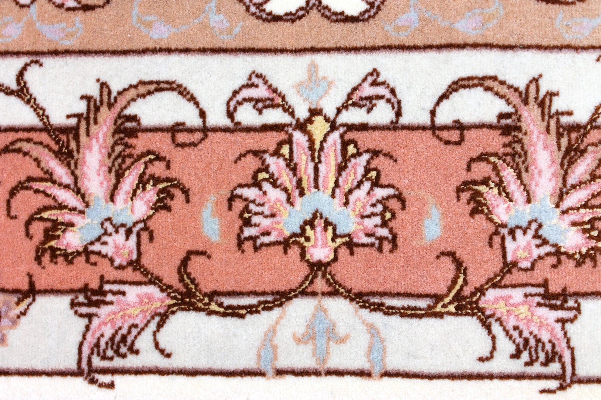 Dieser Perserteppich aus Täbriz wurde aus hochwertiger Schafwolle von Hand geknüpft. Sie ist das am häufigsten verwendete Material in der Teppichknüpfkunst und bringt eine Reihe beeindruckender Eigenschaften mit sich:
