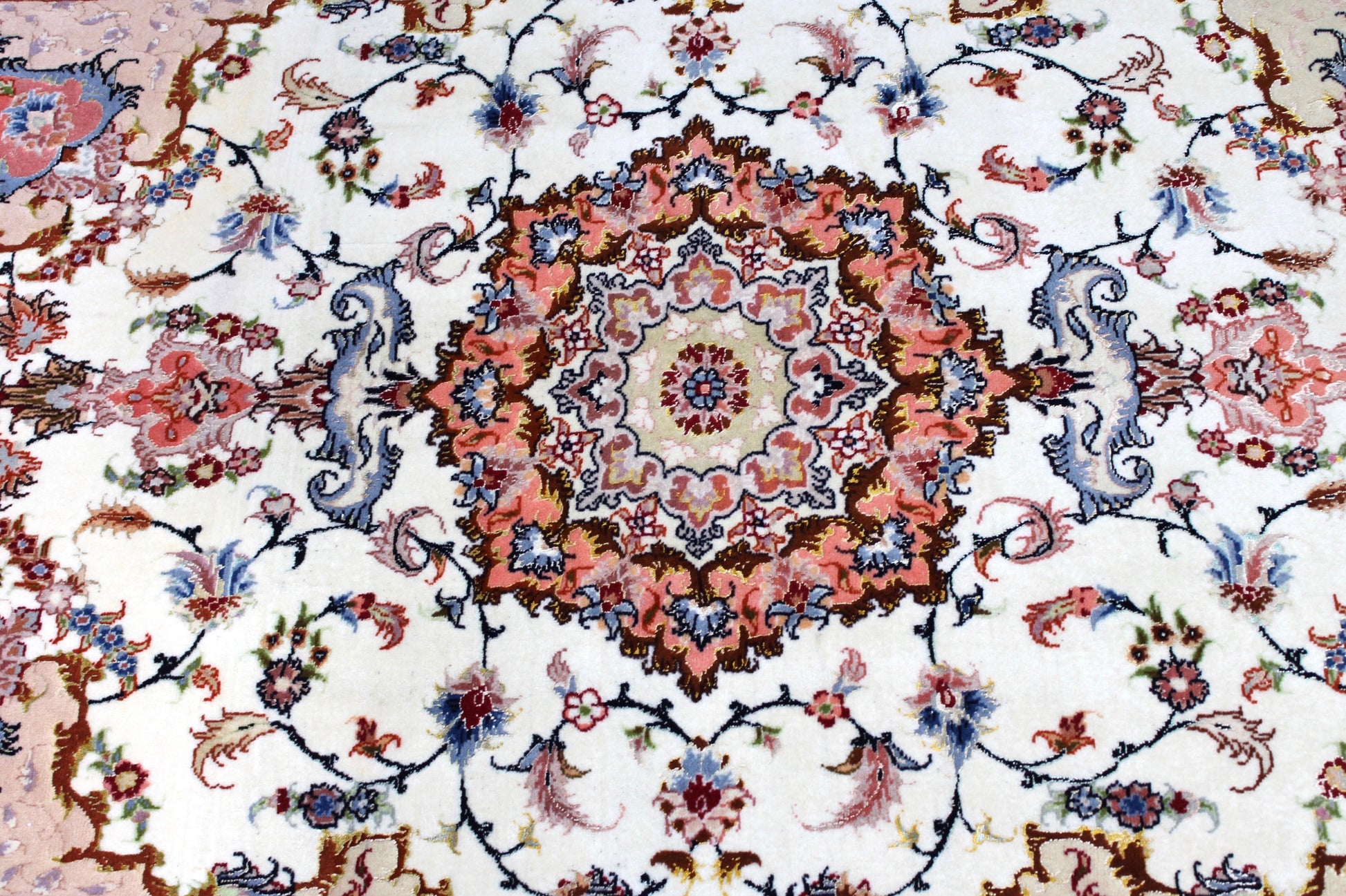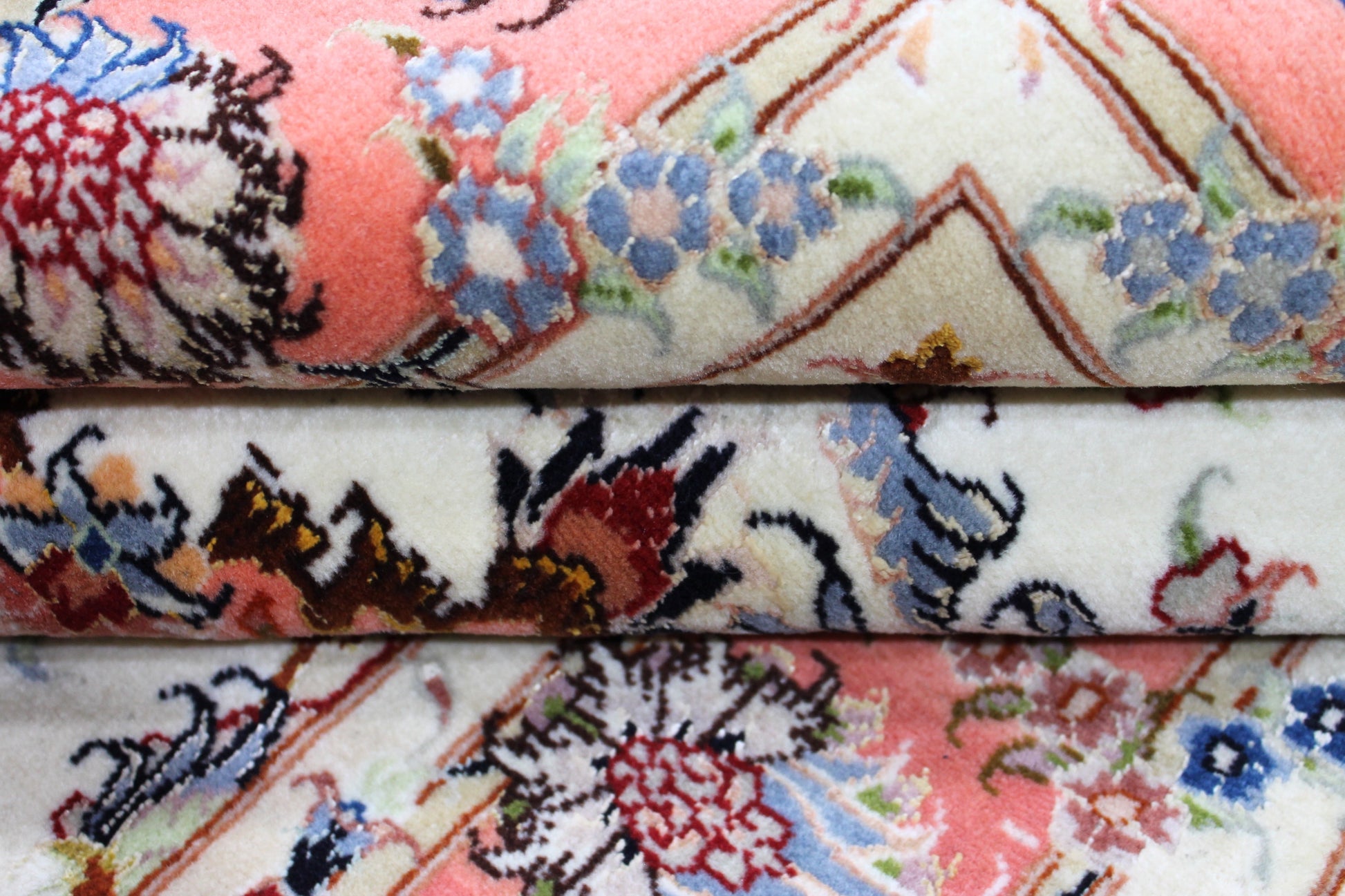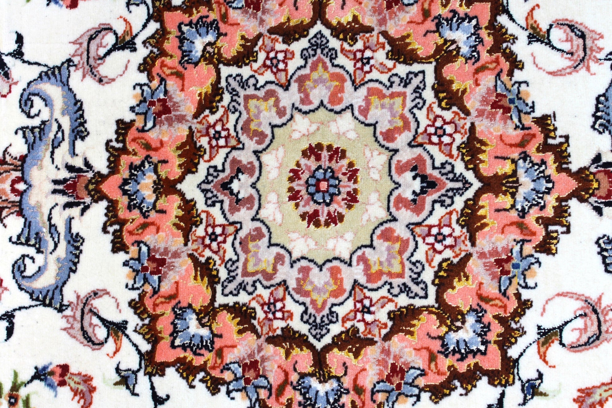 Dieser Perserteppich aus Täbriz wurde aus hochwertiger Schafwolle von Hand geknüpft. Sie ist das am häufigsten verwendete Material in der Teppichknüpfkunst und bringt eine Reihe beeindruckender Eigenschaften mit sich: