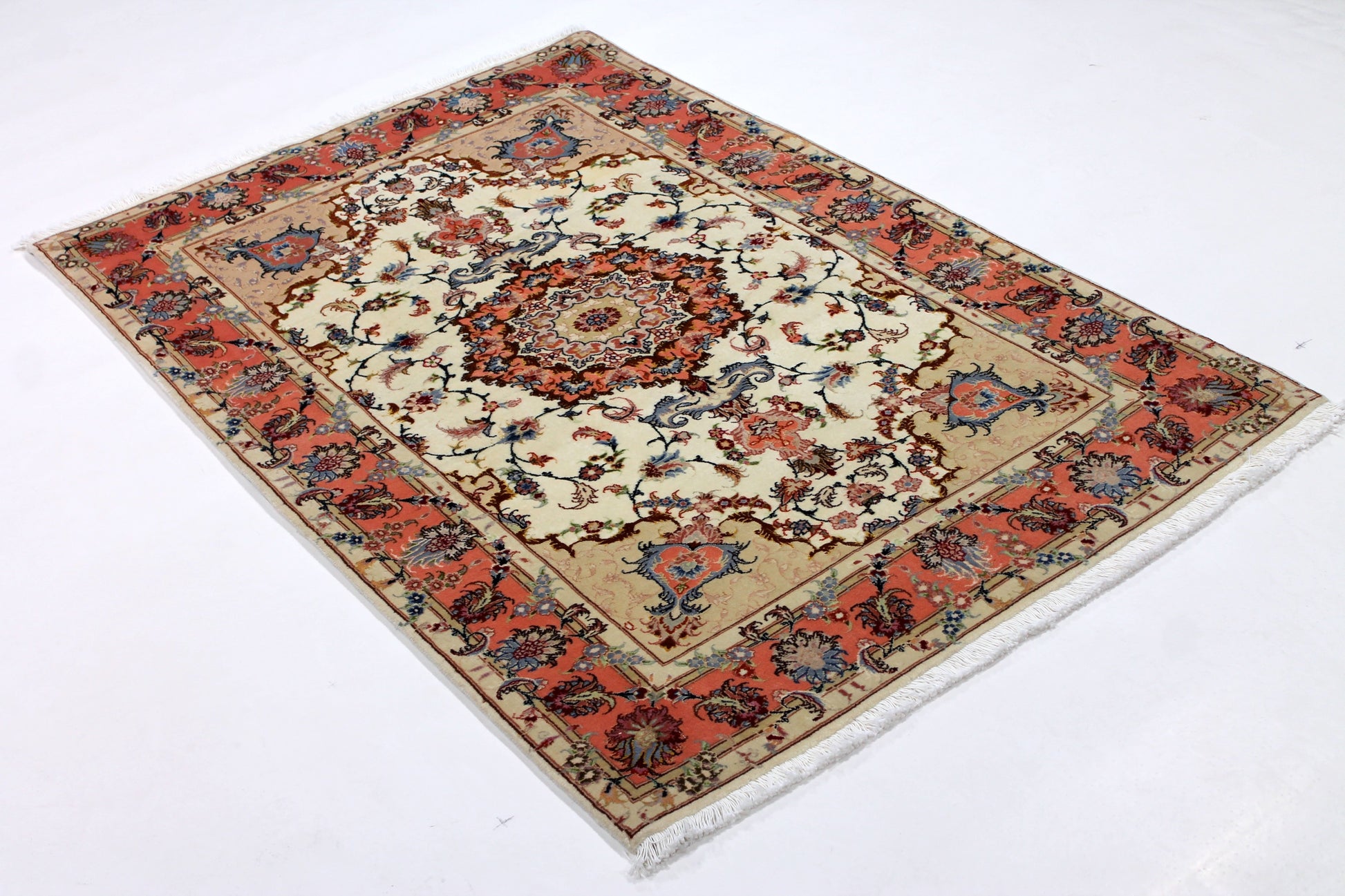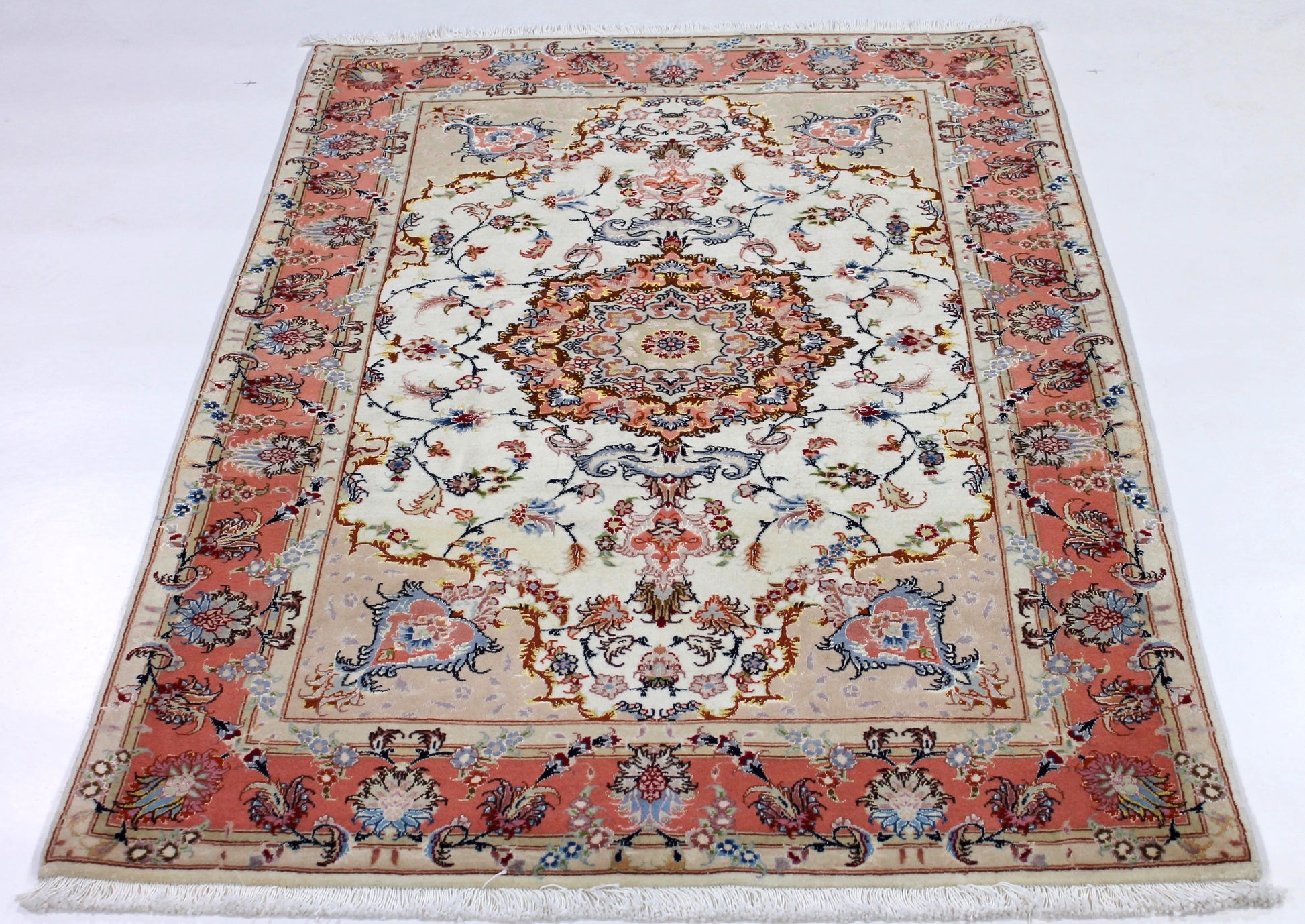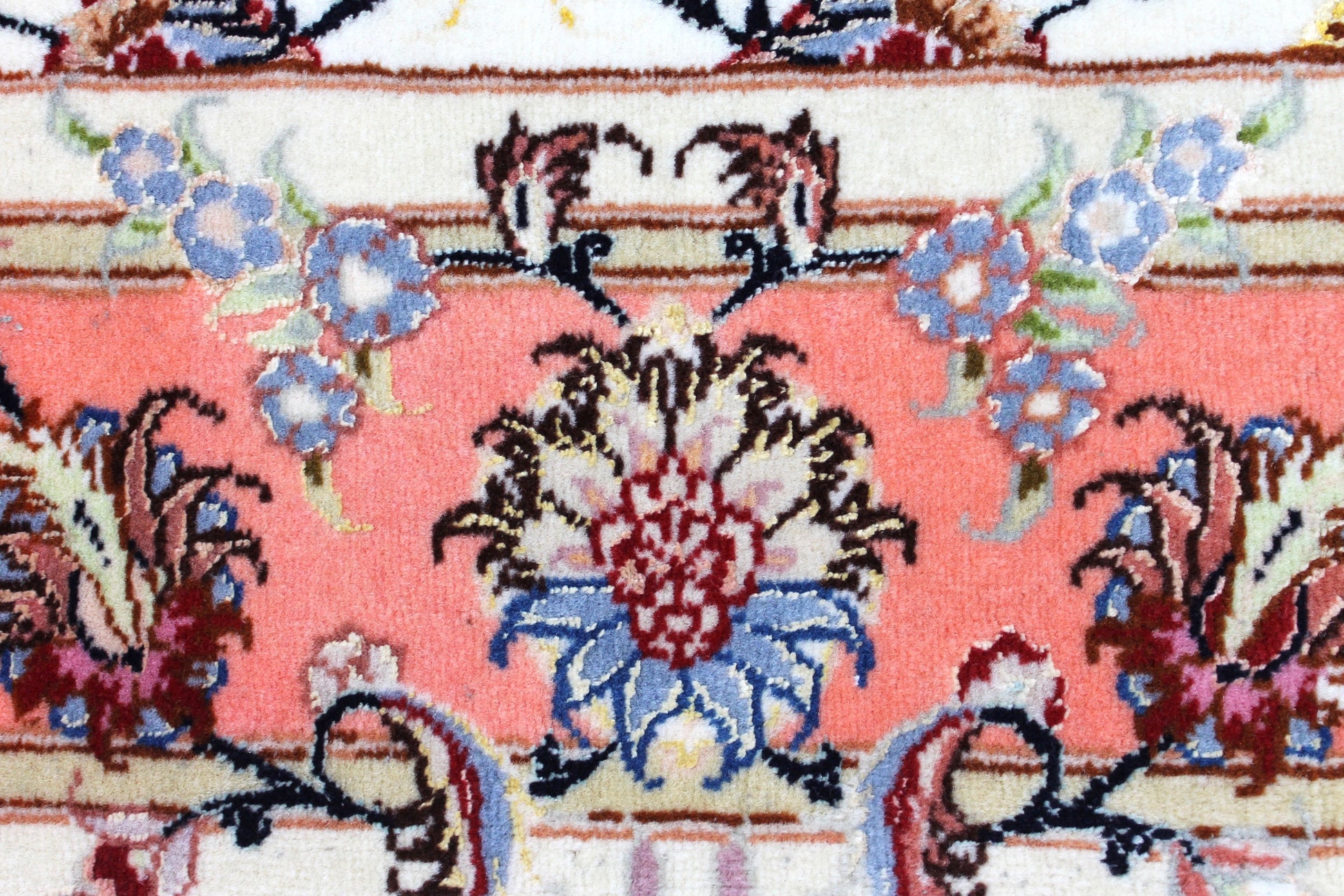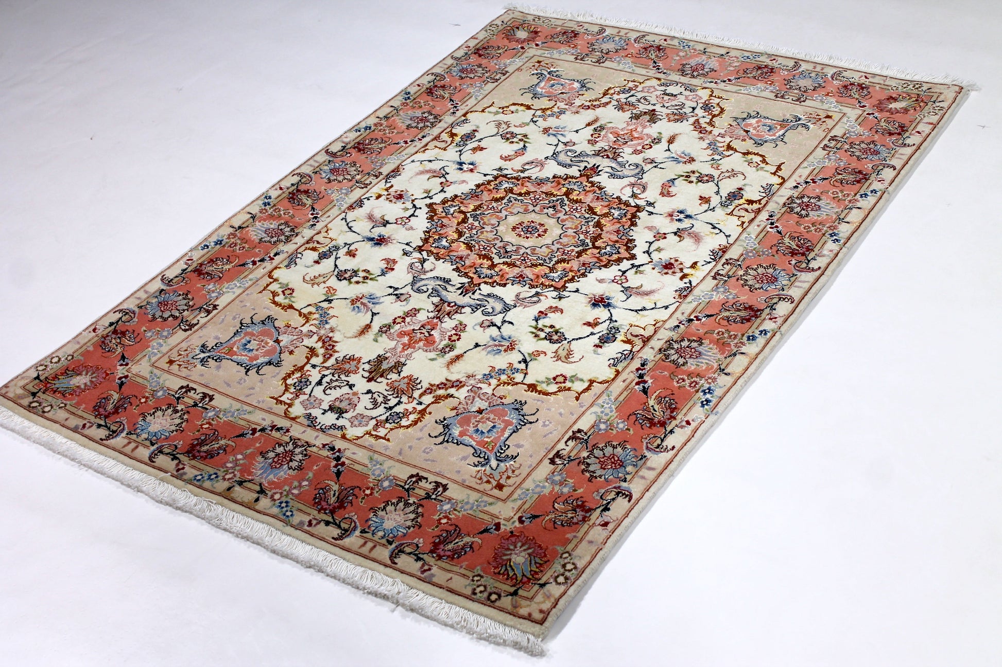 Dieser Perserteppich aus Täbriz wurde aus hochwertiger Schafwolle von Hand geknüpft. Sie ist das am häufigsten verwendete Material in der Teppichknüpfkunst und bringt eine Reihe beeindruckender Eigenschaften mit sich: