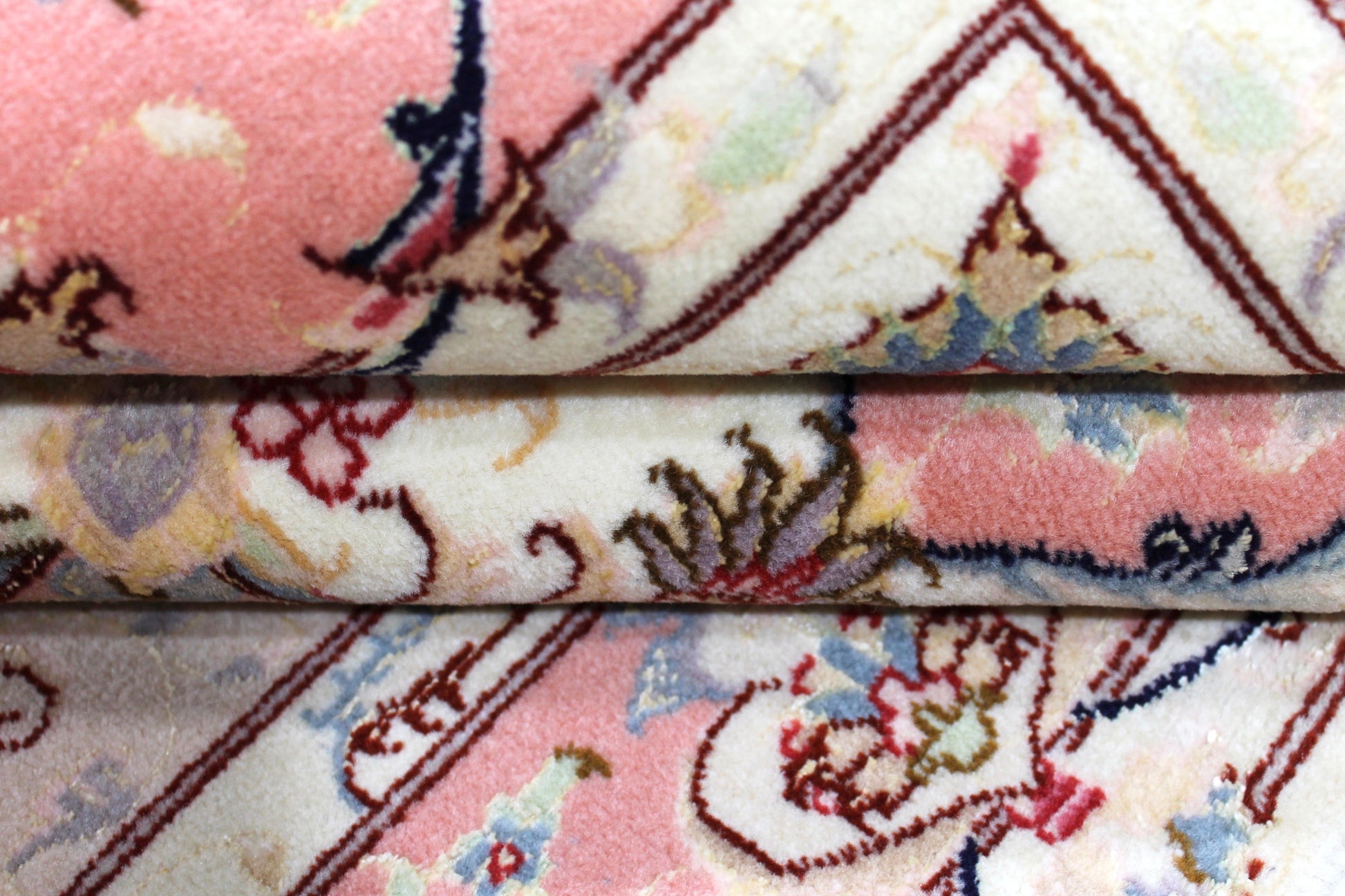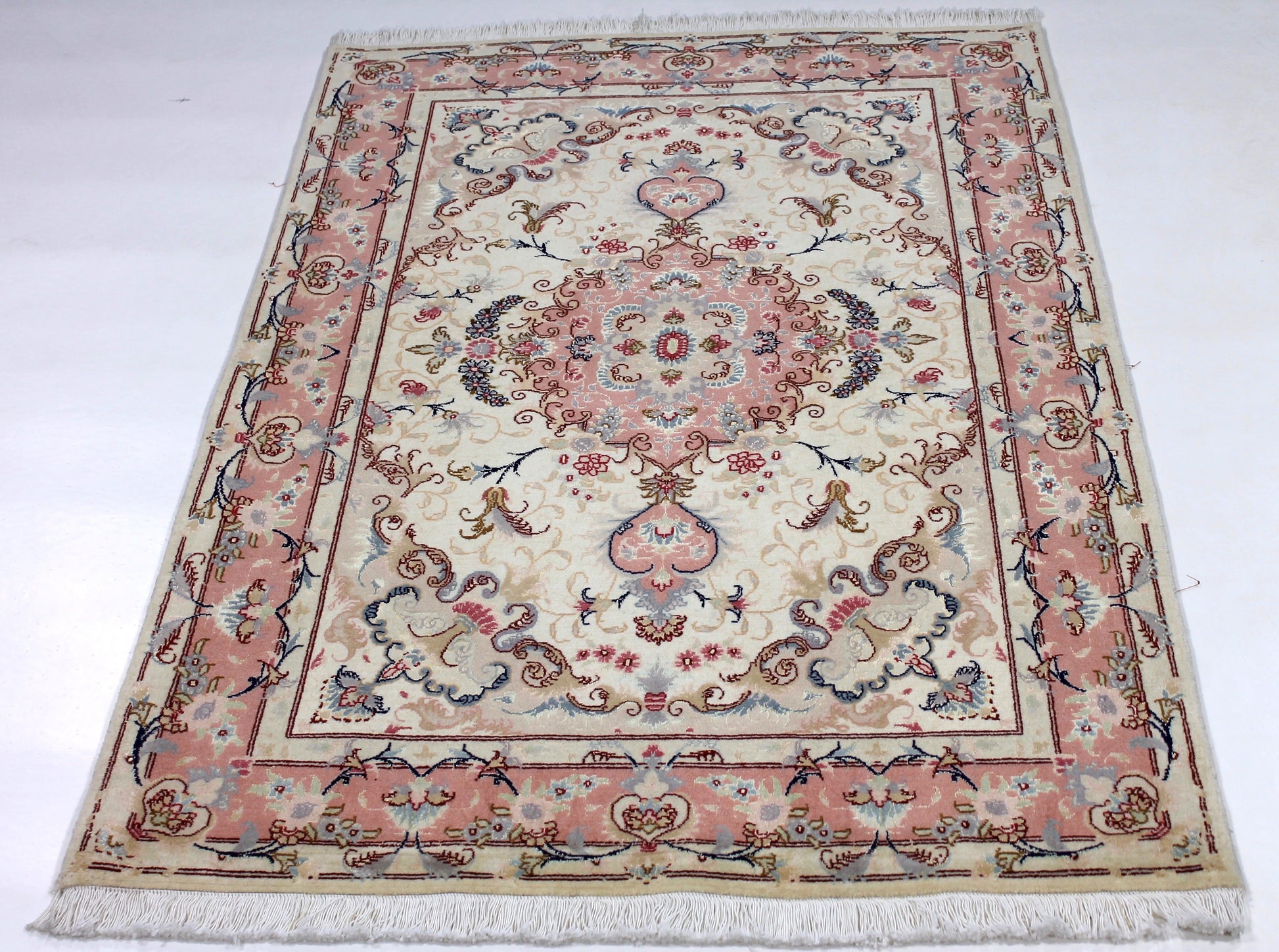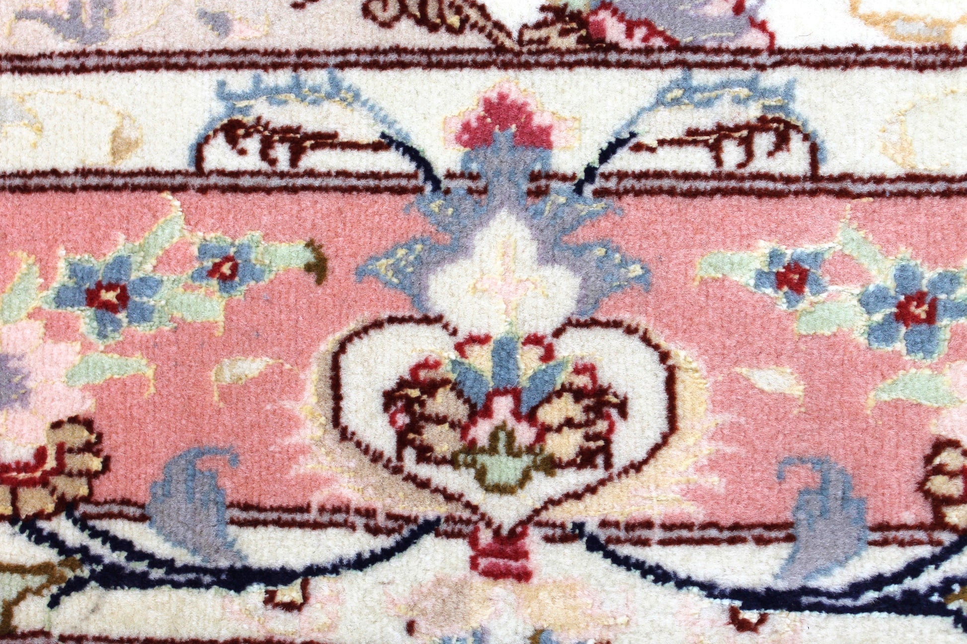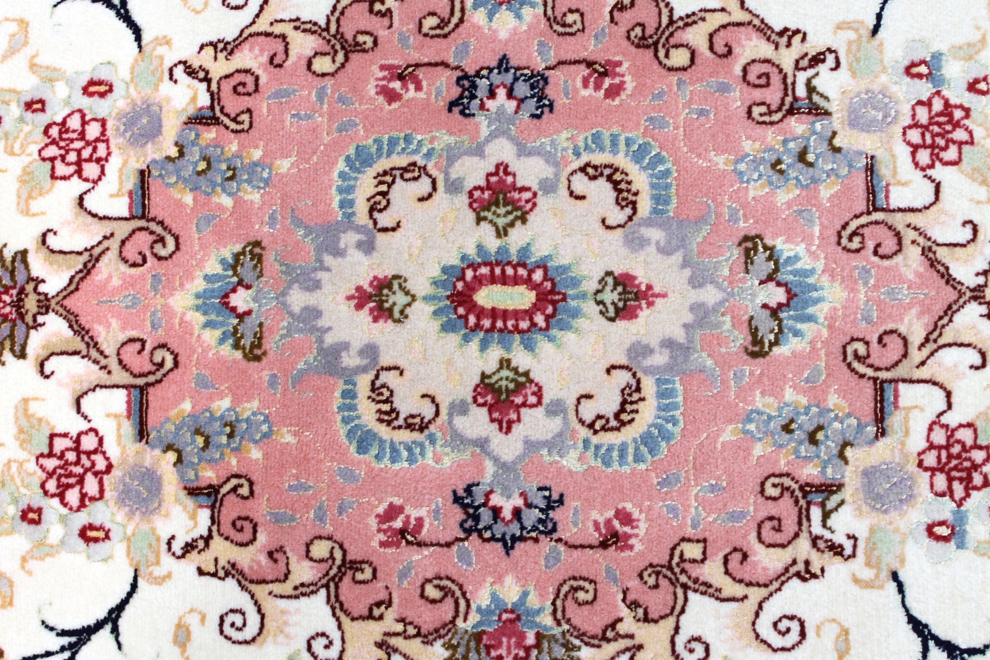 Dieser Perserteppich aus Täbriz wurde aus hochwertiger Schafwolle von Hand geknüpft. Sie ist das am häufigsten verwendete Material in der Teppichknüpfkunst und bringt eine Reihe beeindruckender Eigenschaften mit sich:
