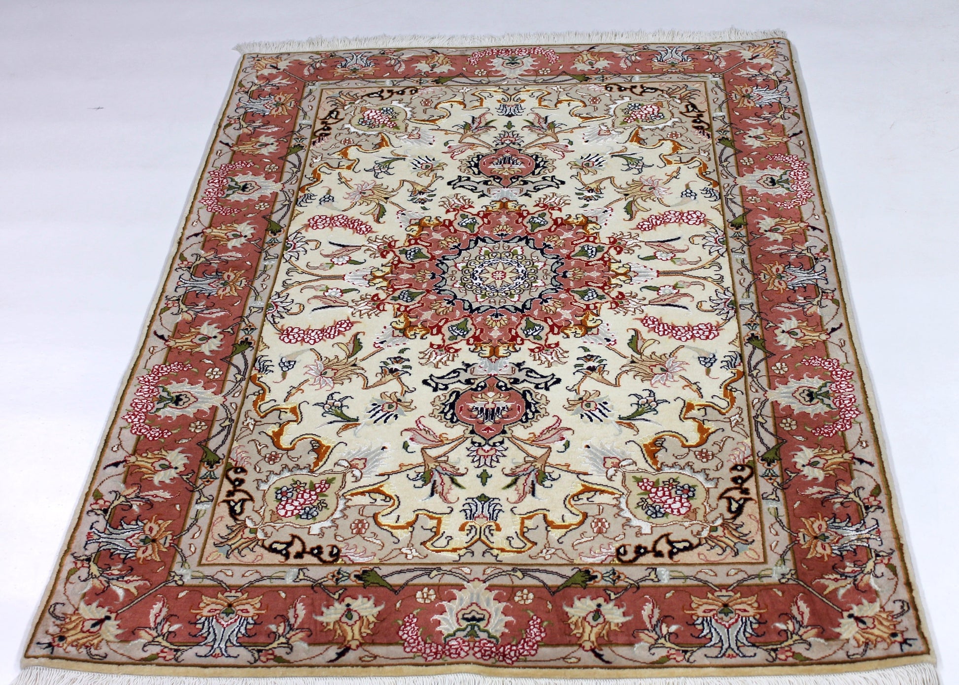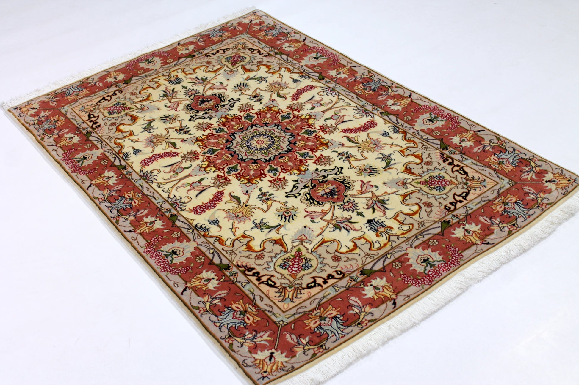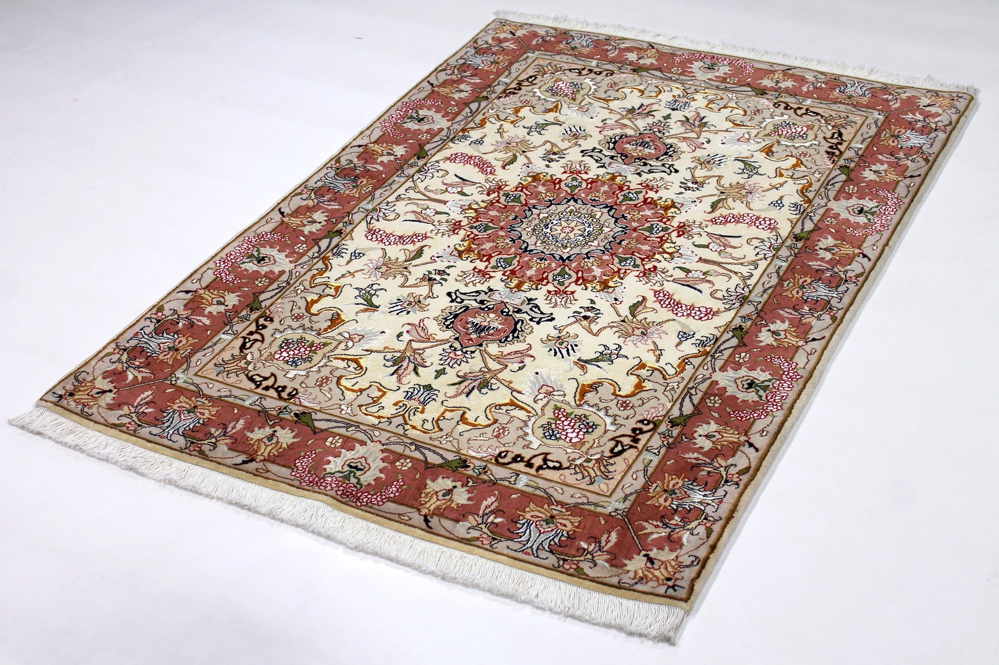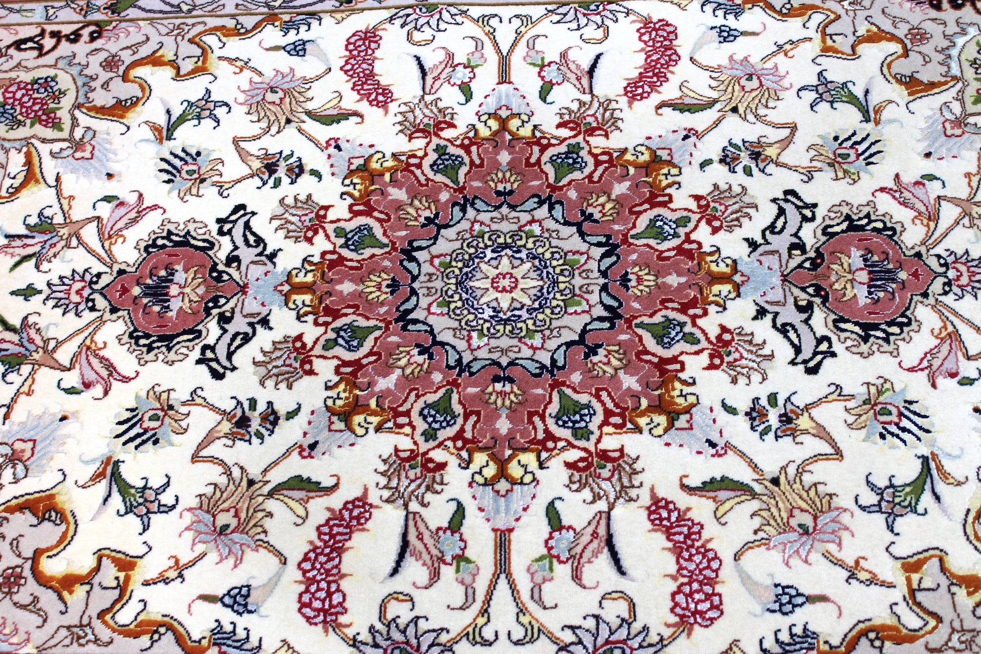 Dieser Perserteppich aus Täbriz wurde aus hochwertiger Schafwolle von Hand geknüpft. Sie ist das am häufigsten verwendete Material in der Teppichknüpfkunst und bringt eine Reihe beeindruckender Eigenschaften mit sich:
