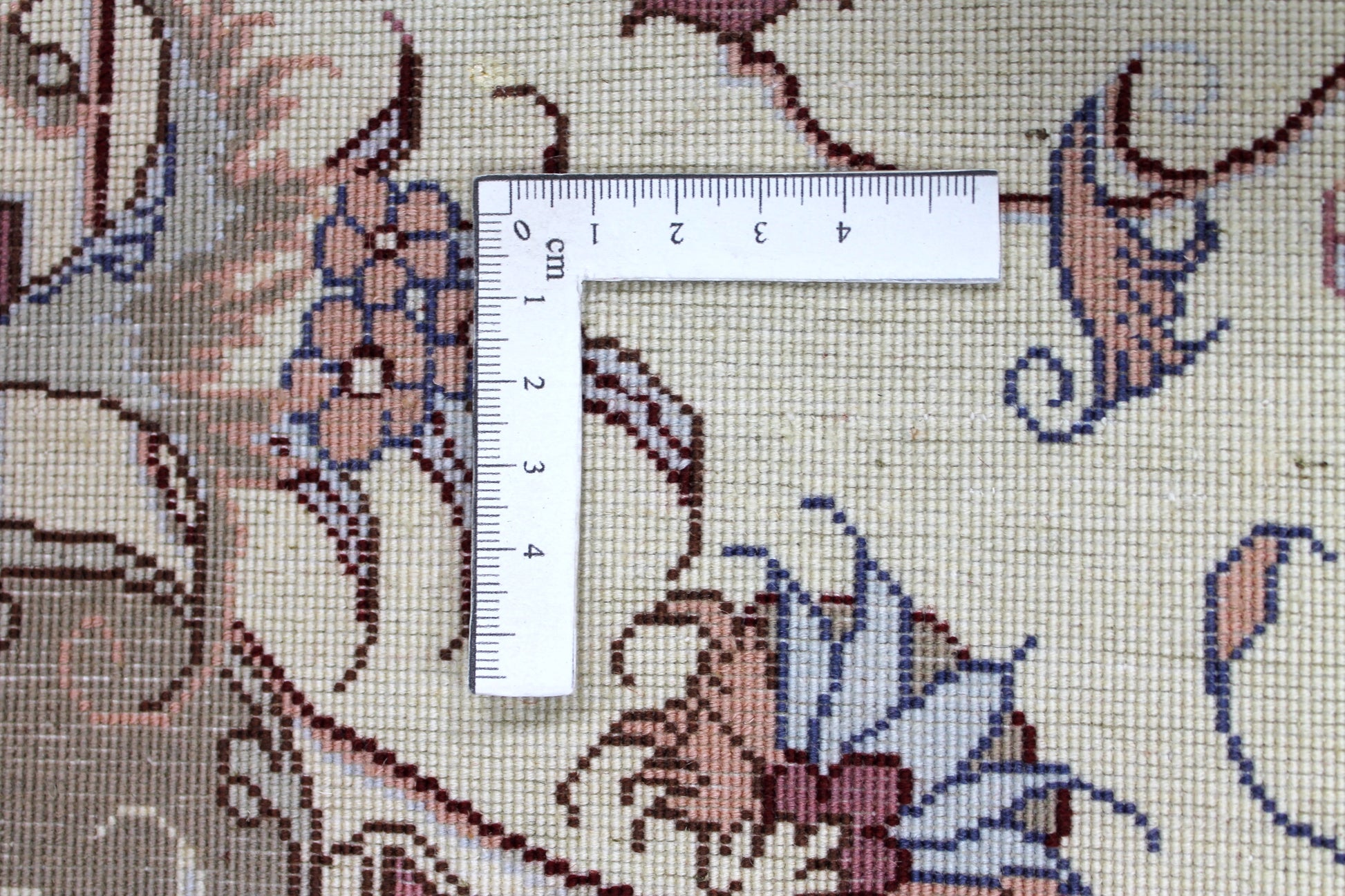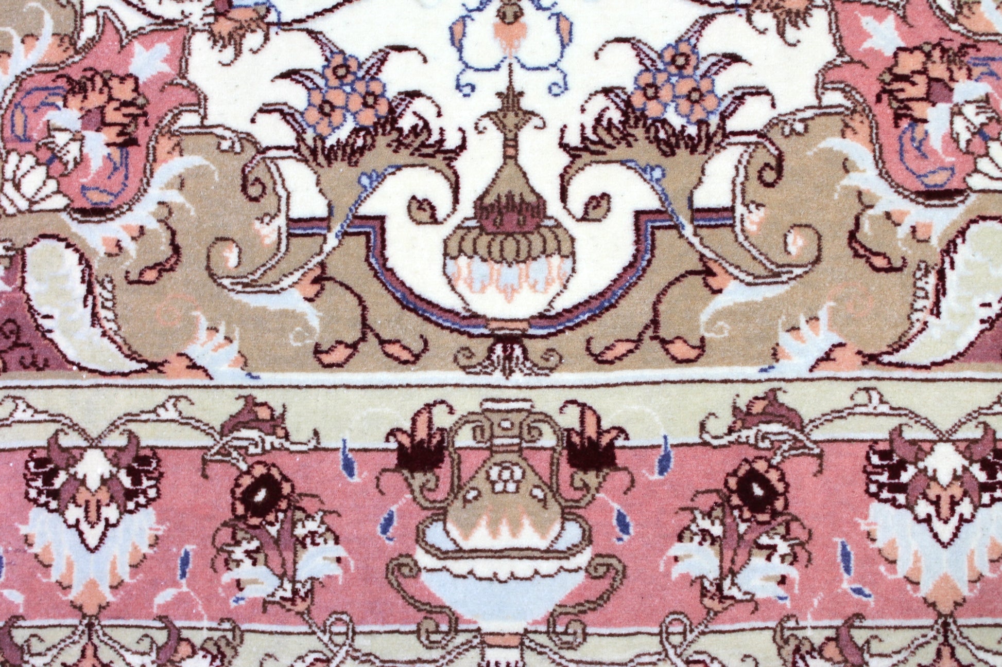 Dieser Perserteppich aus Täbriz wurde aus hochwertiger Schafwolle von Hand geknüpft. Sie ist das am häufigsten verwendete Material in der Teppichknüpfkunst und bringt eine Reihe beeindruckender Eigenschaften mit sich: