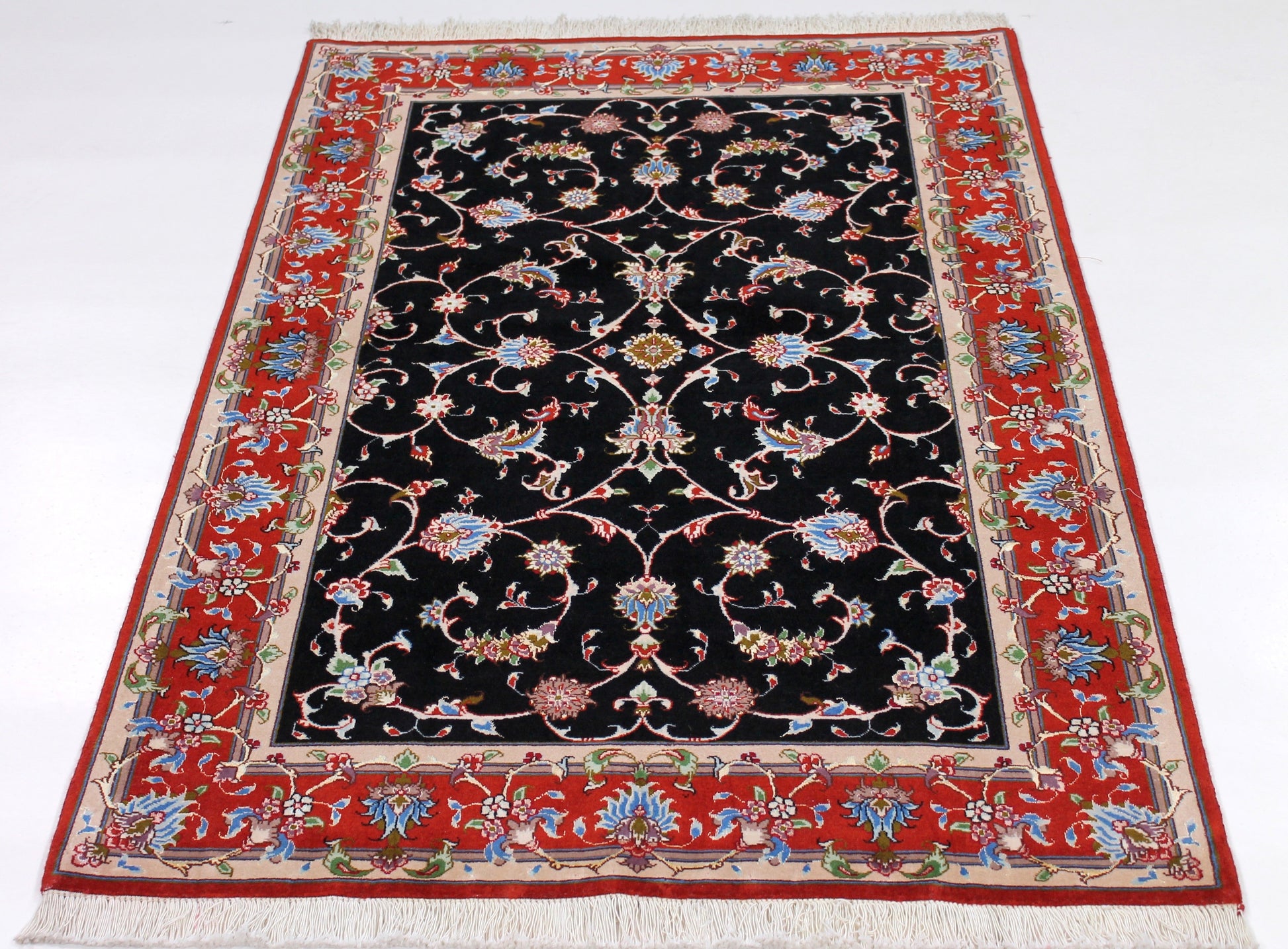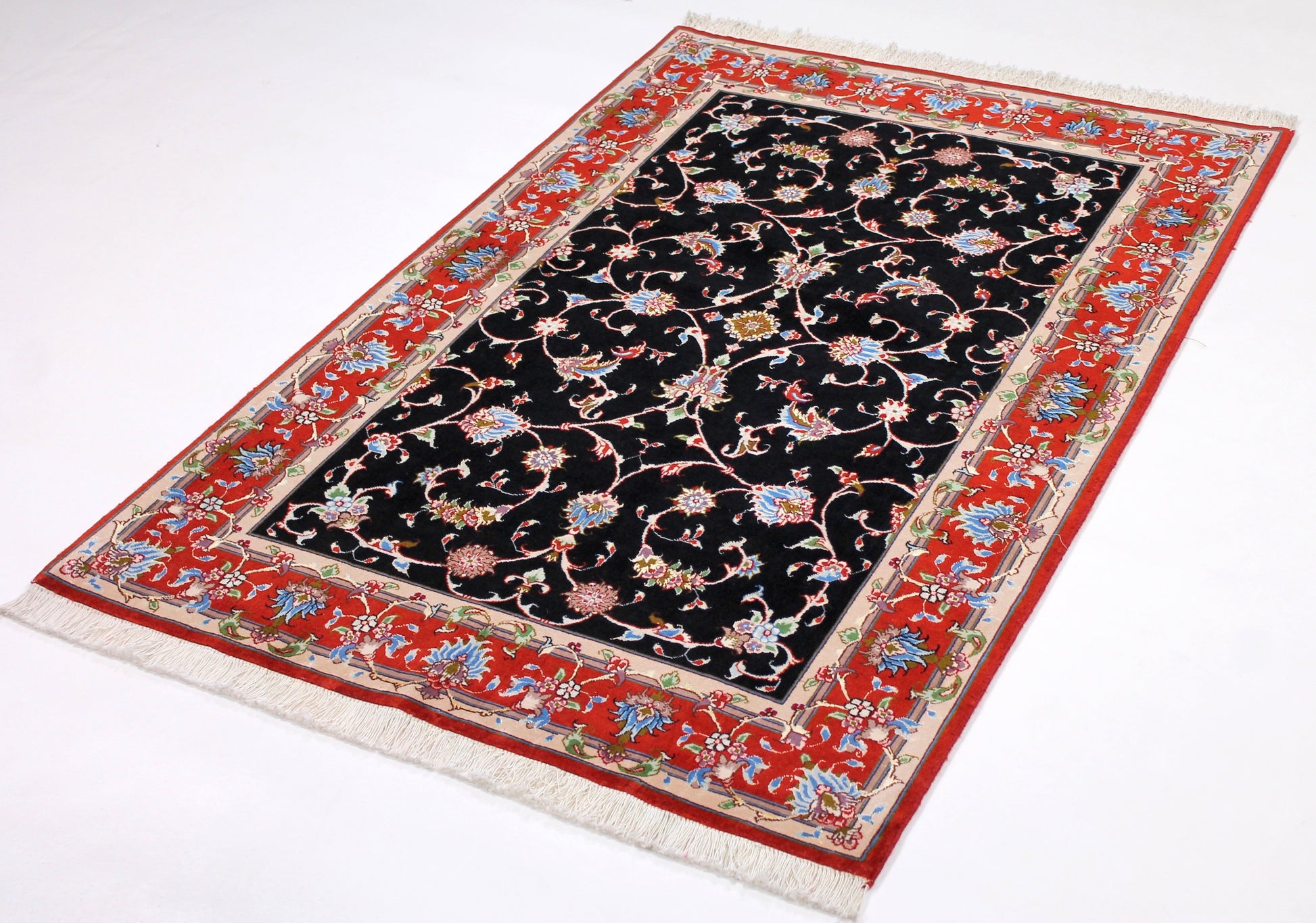 Dieser Perserteppich aus Täbriz wurde aus hochwertiger Schafwolle von Hand geknüpft. Sie ist das am häufigsten verwendete Material in der Teppichknüpfkunst und bringt eine Reihe beeindruckender Eigenschaften mit sich: