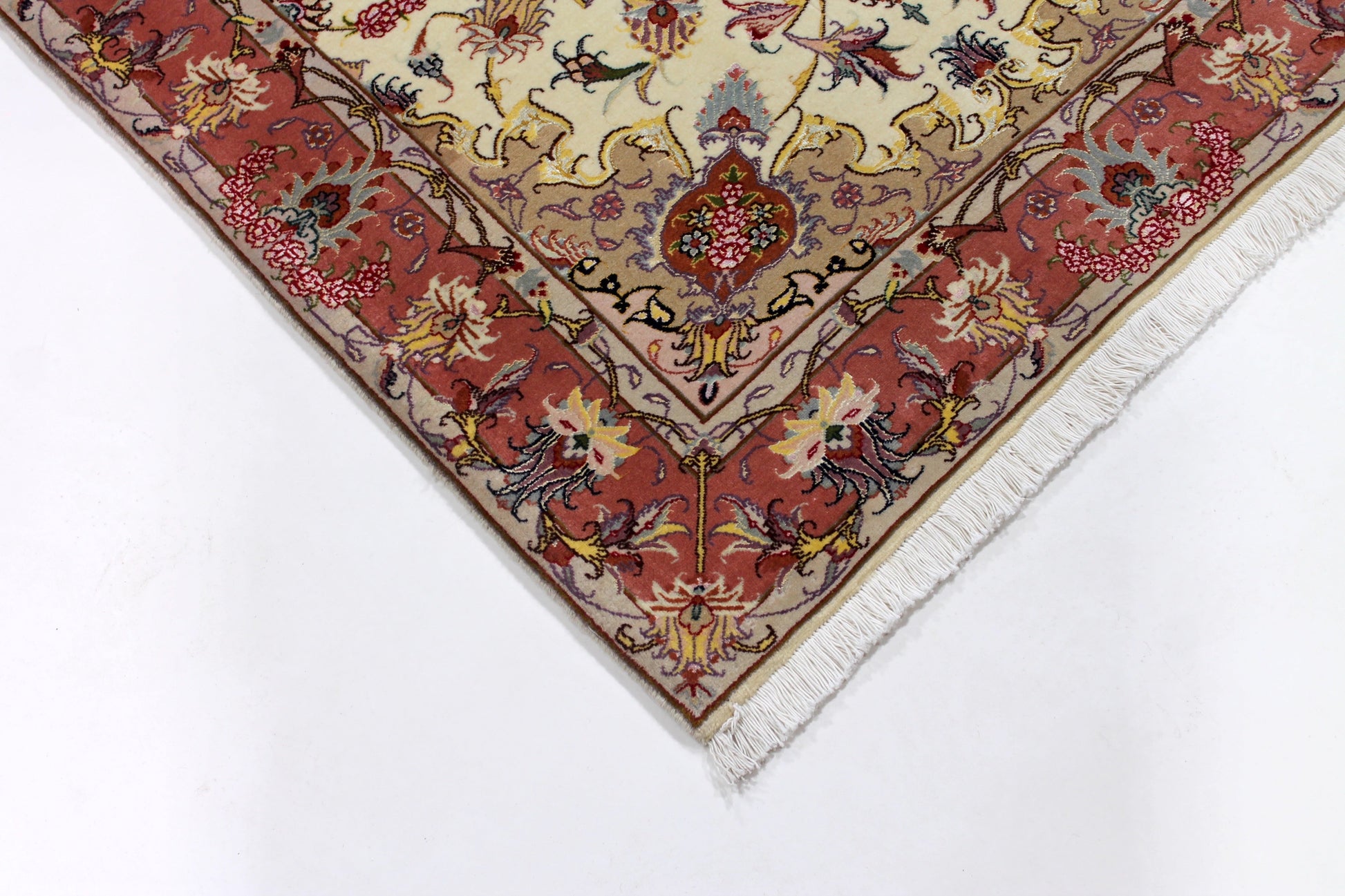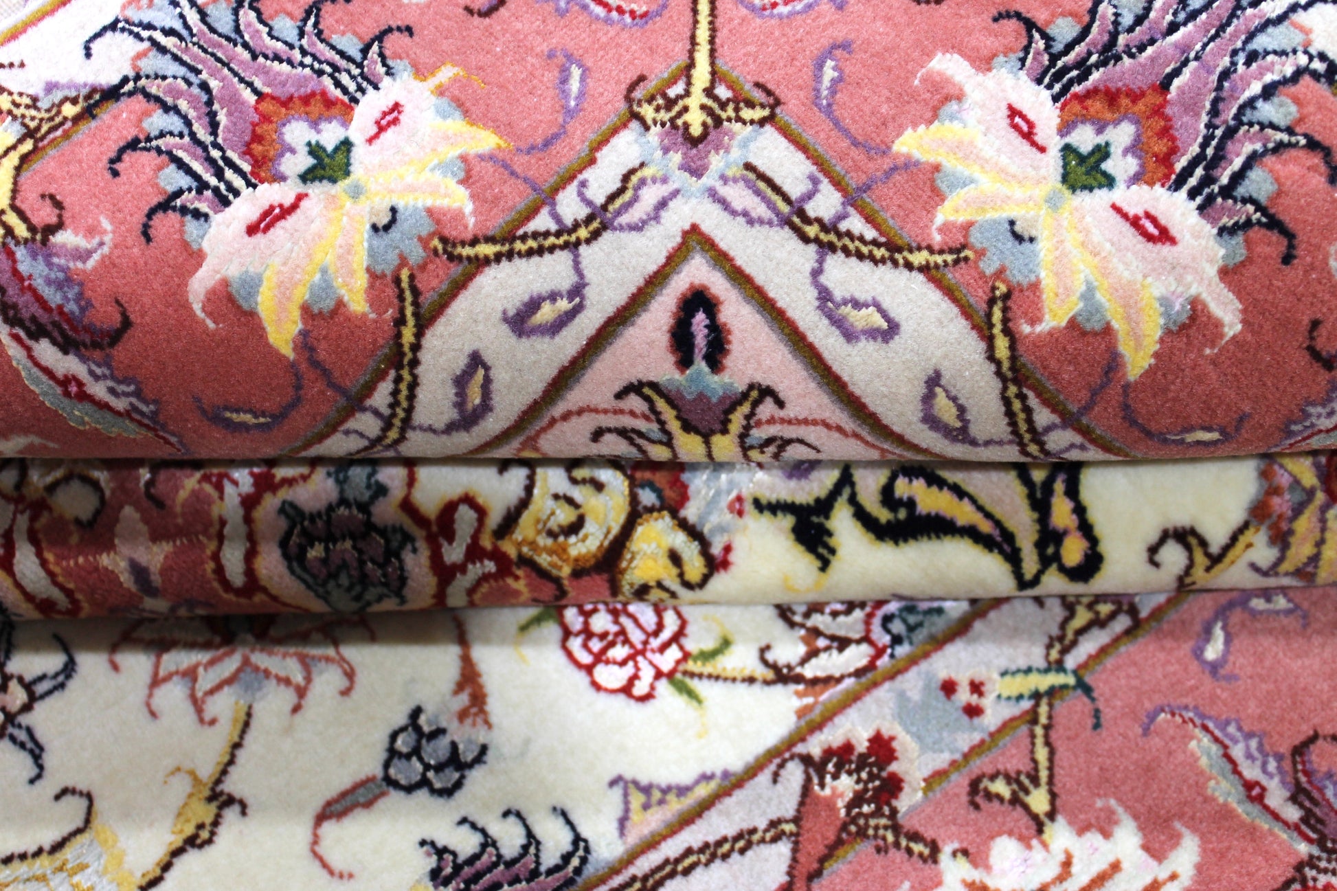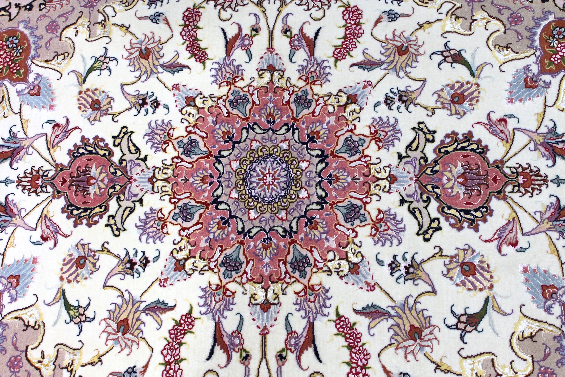 Dieser Perserteppich aus Täbriz wurde aus hochwertiger Schafwolle von Hand geknüpft. Sie ist das am häufigsten verwendete Material in der Teppichknüpfkunst und bringt eine Reihe beeindruckender Eigenschaften mit sich: