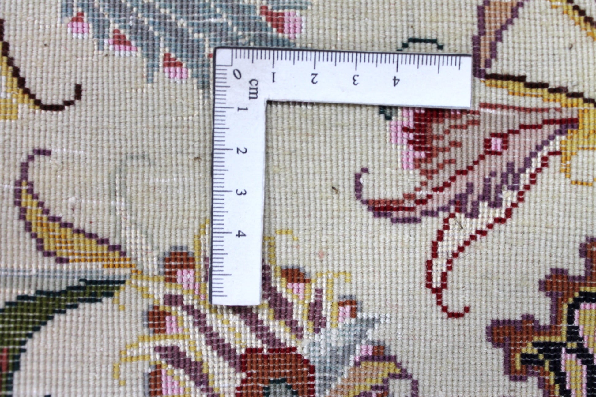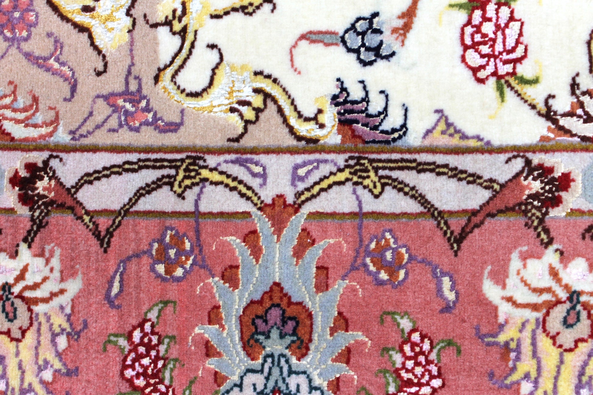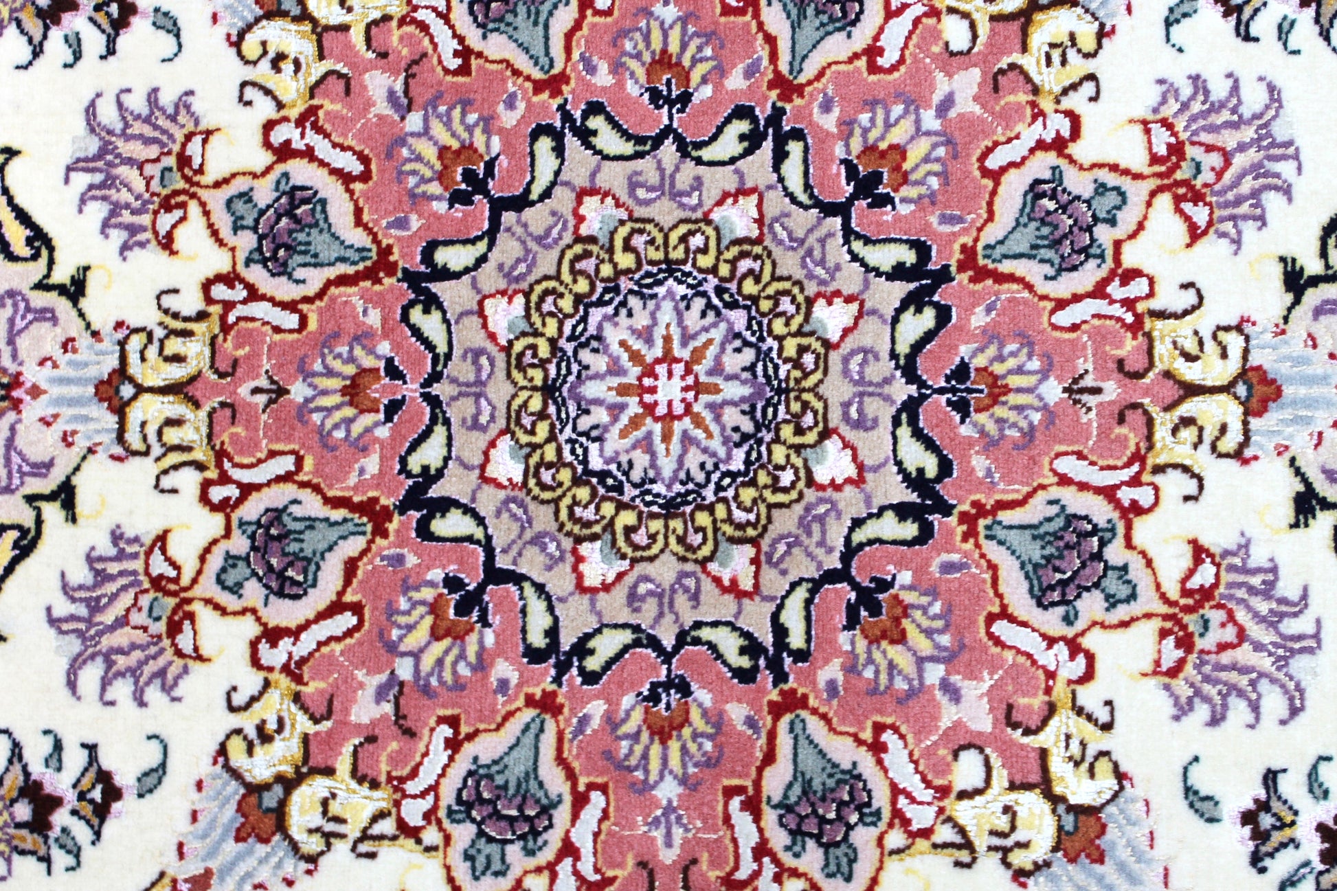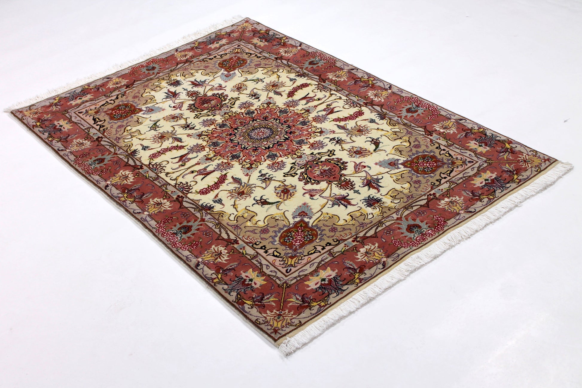 Dieser Perserteppich aus Täbriz wurde aus hochwertiger Schafwolle von Hand geknüpft. Sie ist das am häufigsten verwendete Material in der Teppichknüpfkunst und bringt eine Reihe beeindruckender Eigenschaften mit sich: