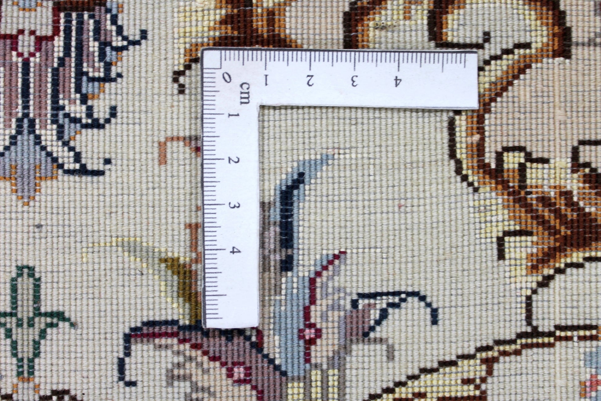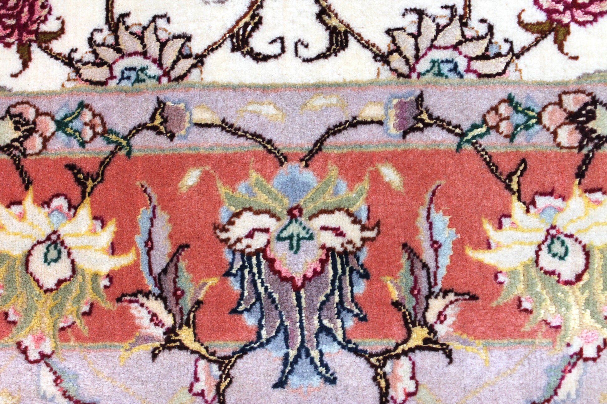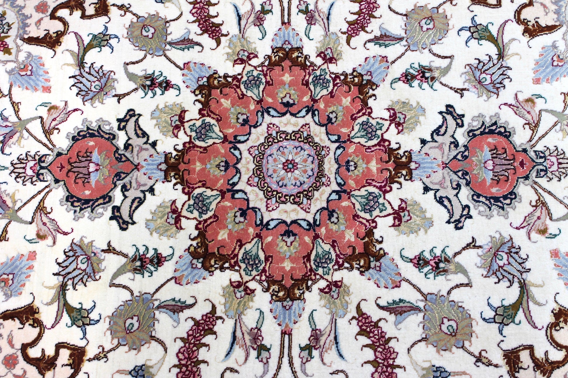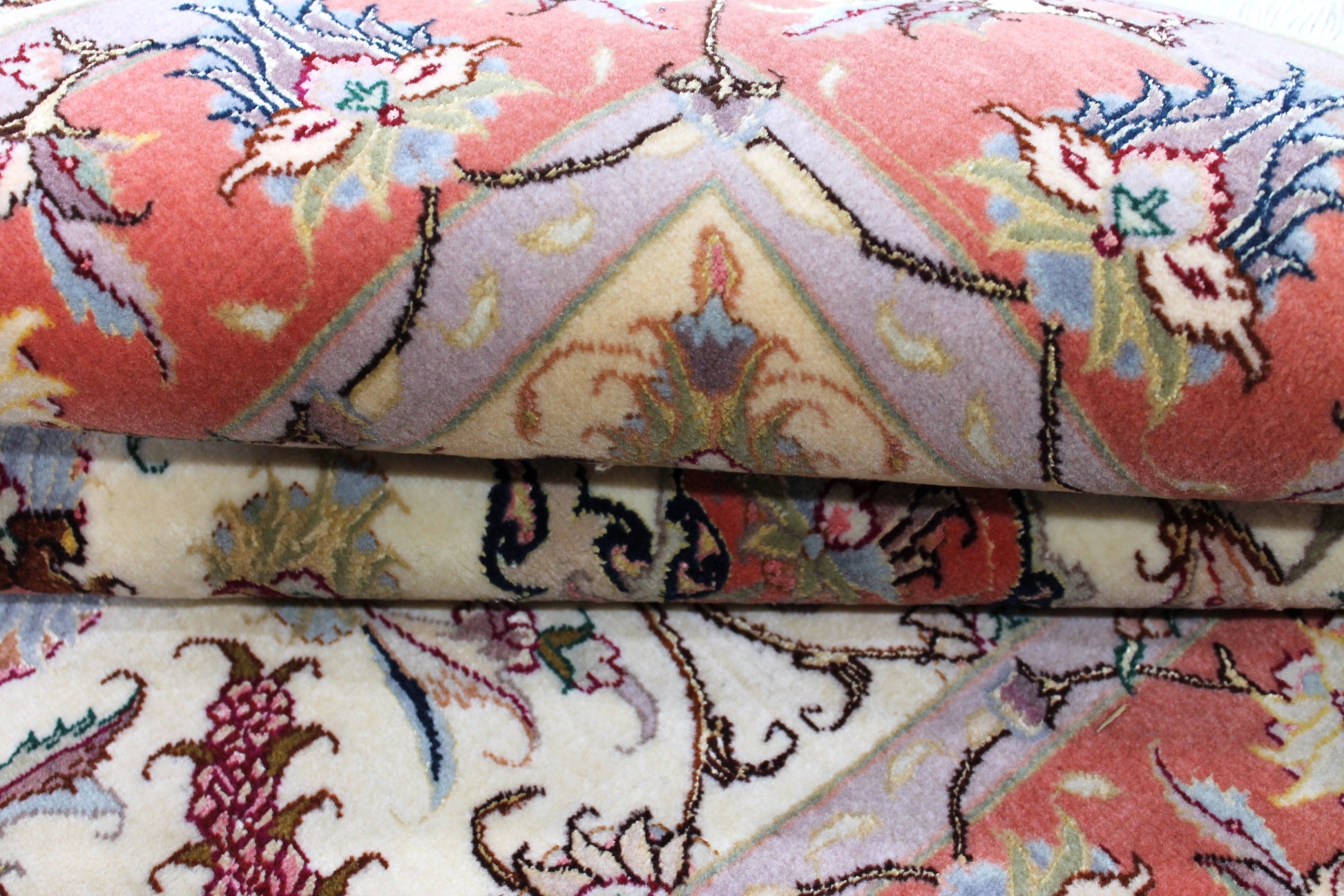 Dieser Perserteppich aus Täbriz wurde aus hochwertiger Schafwolle von Hand geknüpft. Sie ist das am häufigsten verwendete Material in der Teppichknüpfkunst und bringt eine Reihe beeindruckender Eigenschaften mit sich: