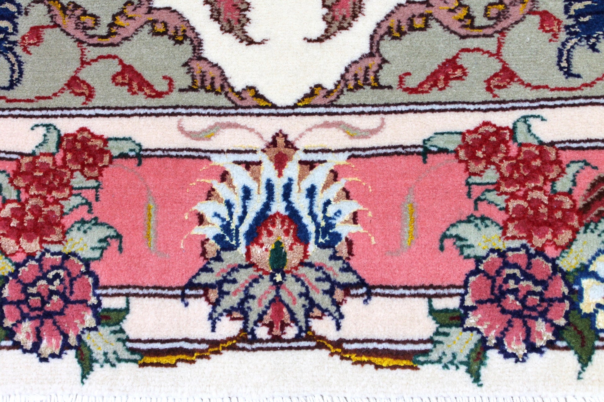 Dieser Perserteppich aus Täbriz wurde aus hochwertiger Schafwolle von Hand geknüpft. Sie ist das am häufigsten verwendete Material in der Teppichknüpfkunst und bringt eine Reihe beeindruckender Eigenschaften mit sich: