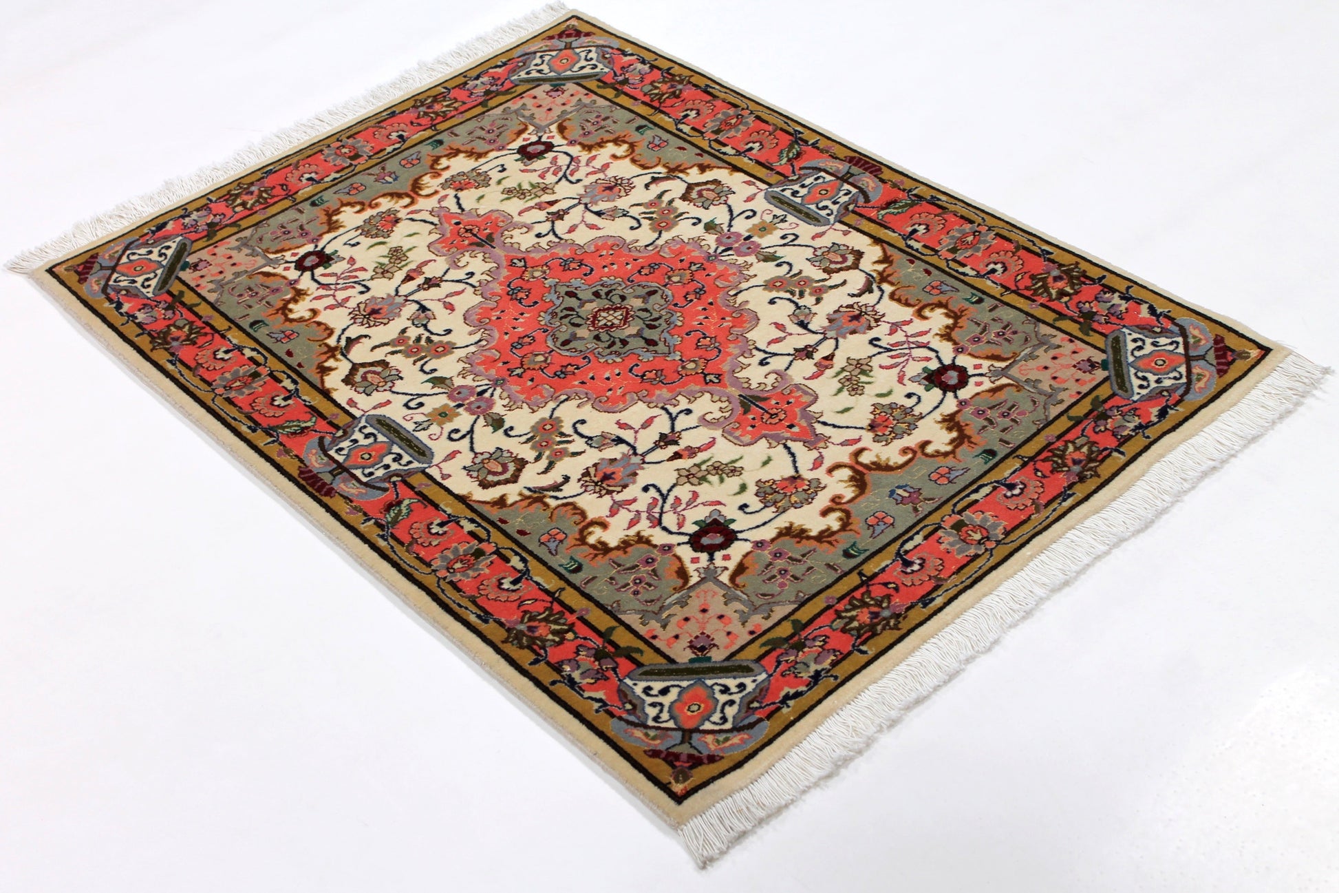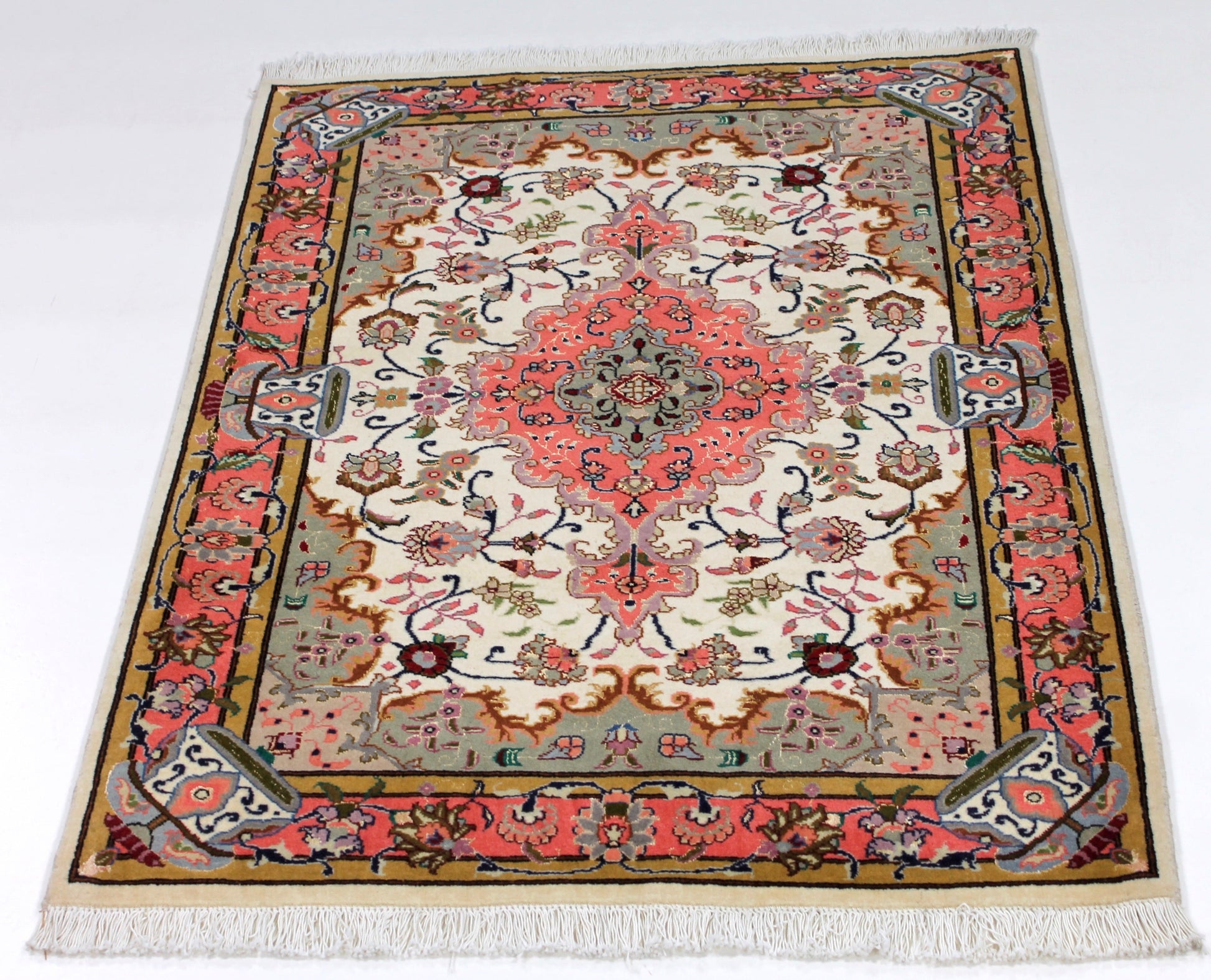 Dieser Perserteppich aus Täbriz wurde aus hochwertiger Schafwolle von Hand geknüpft. Sie ist das am häufigsten verwendete Material in der Teppichknüpfkunst und bringt eine Reihe beeindruckender Eigenschaften mit sich: