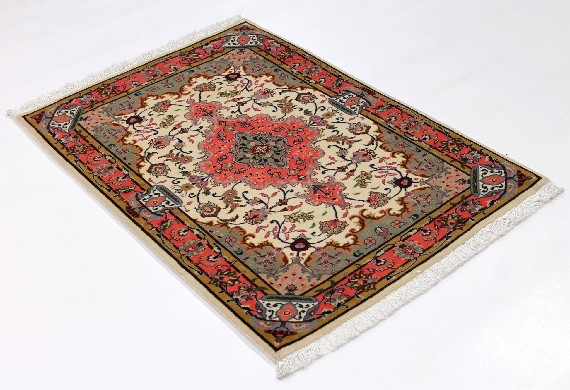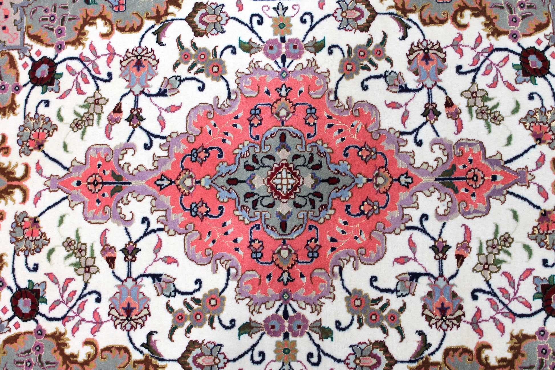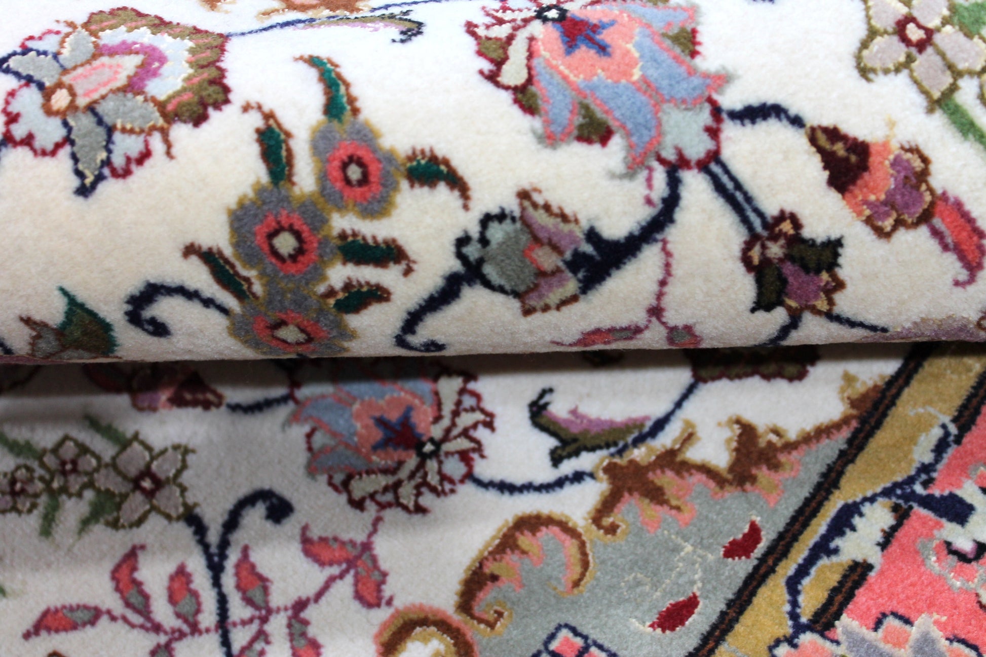 Dieser Perserteppich aus Täbriz wurde aus hochwertiger Schafwolle von Hand geknüpft. Sie ist das am häufigsten verwendete Material in der Teppichknüpfkunst und bringt eine Reihe beeindruckender Eigenschaften mit sich: