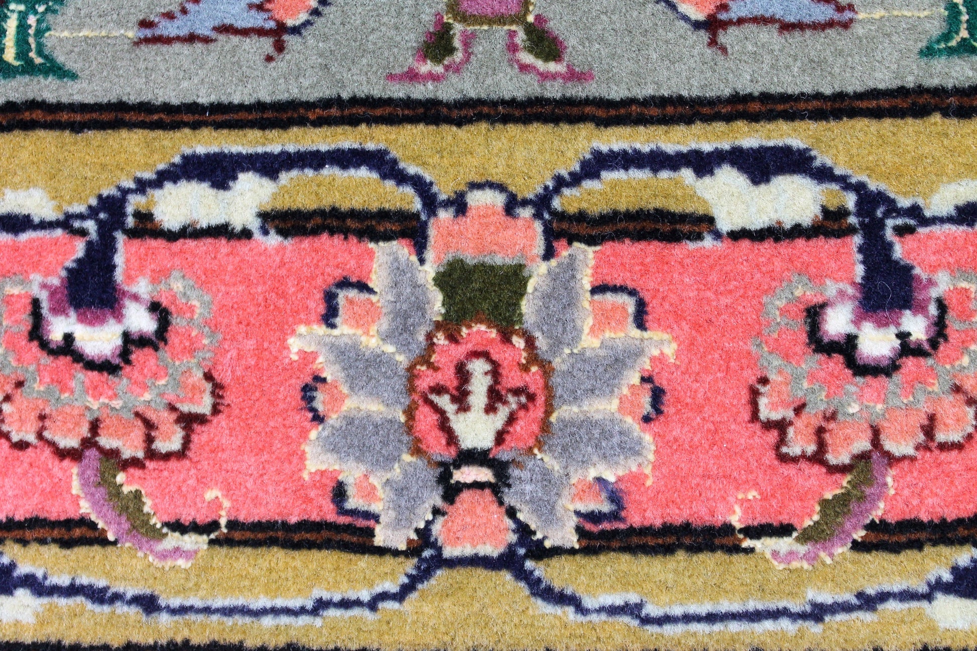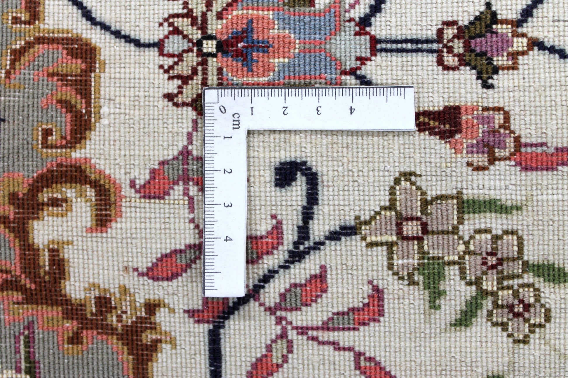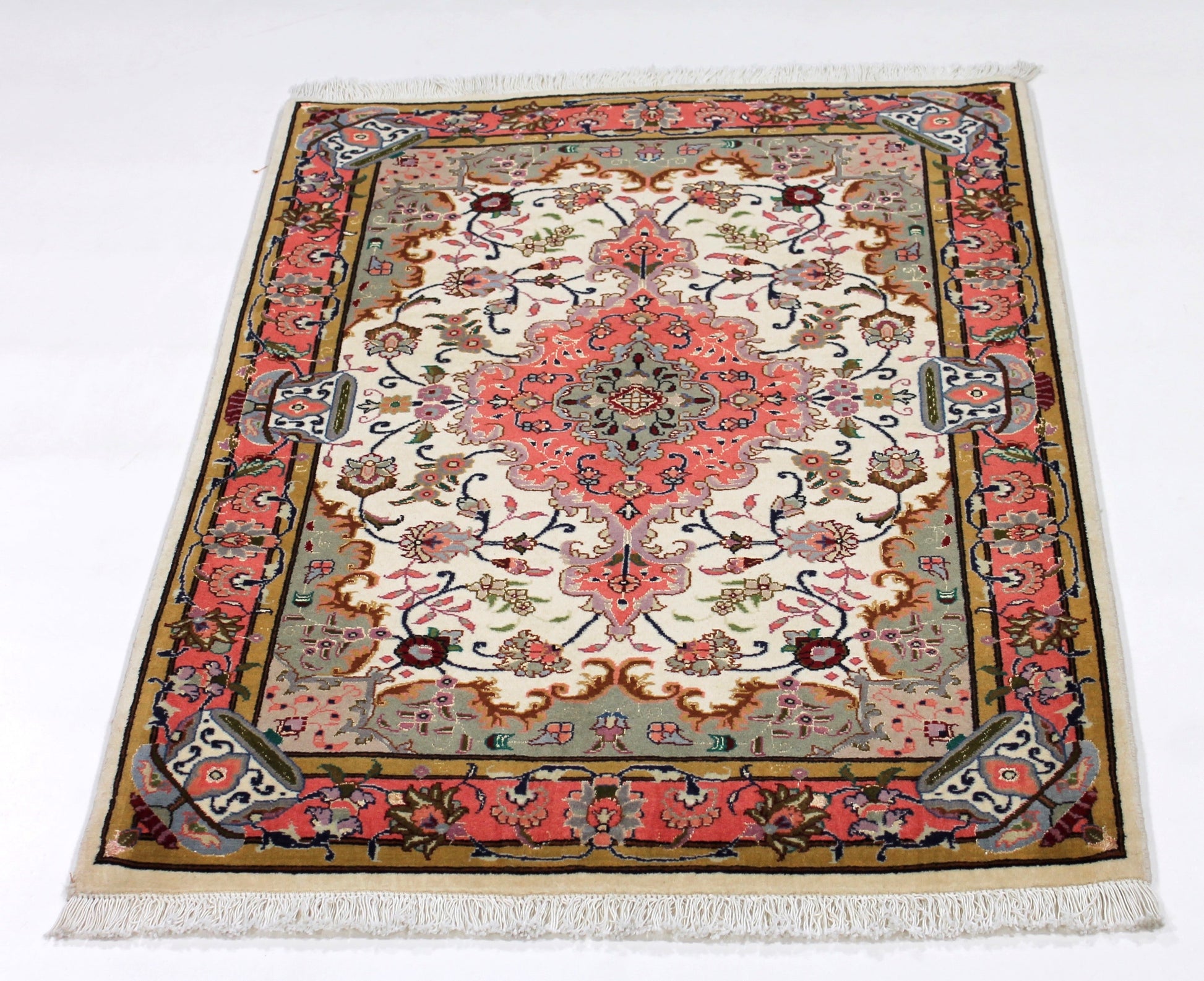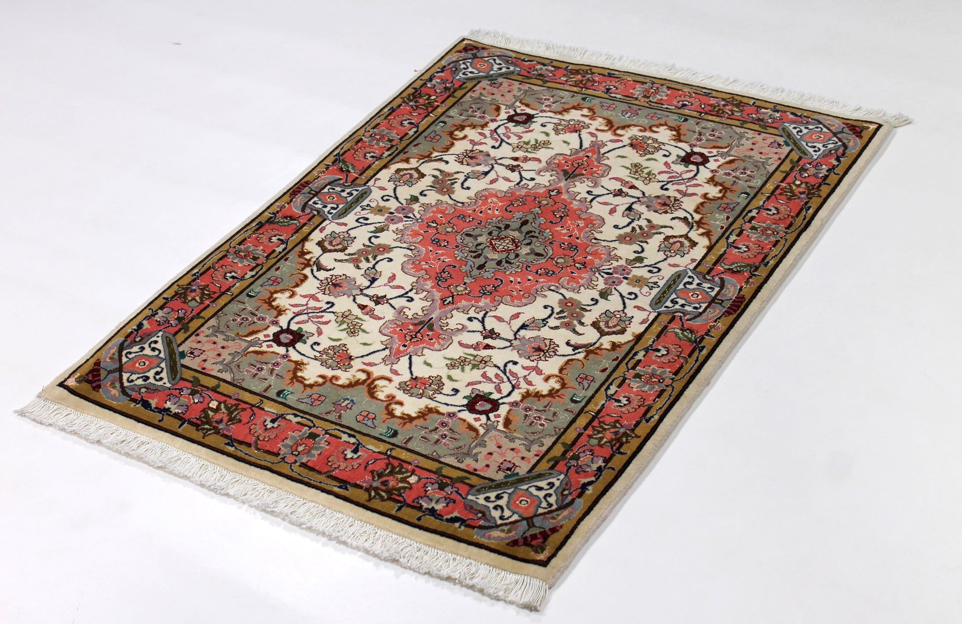 Dieser Perserteppich aus Täbriz wurde aus hochwertiger Schafwolle von Hand geknüpft. Sie ist das am häufigsten verwendete Material in der Teppichknüpfkunst und bringt eine Reihe beeindruckender Eigenschaften mit sich: