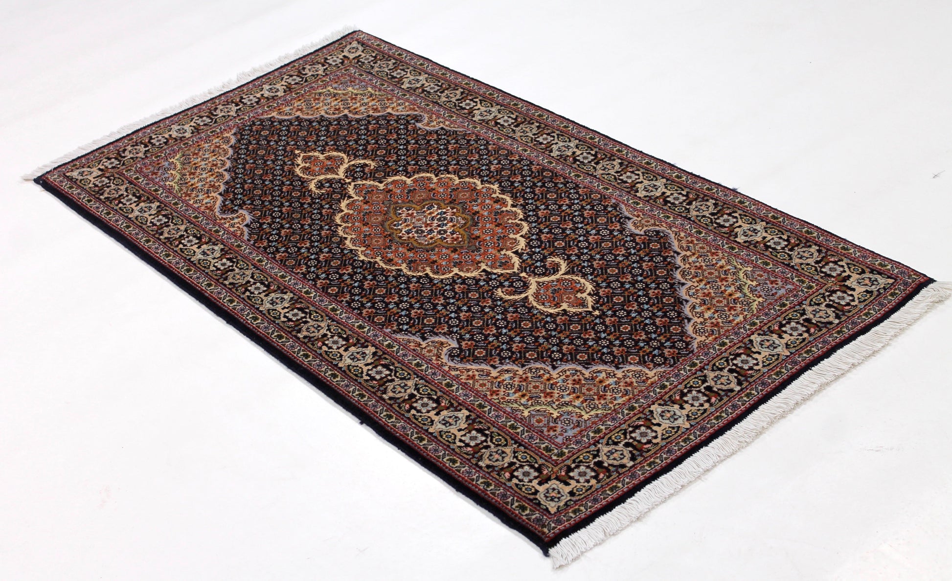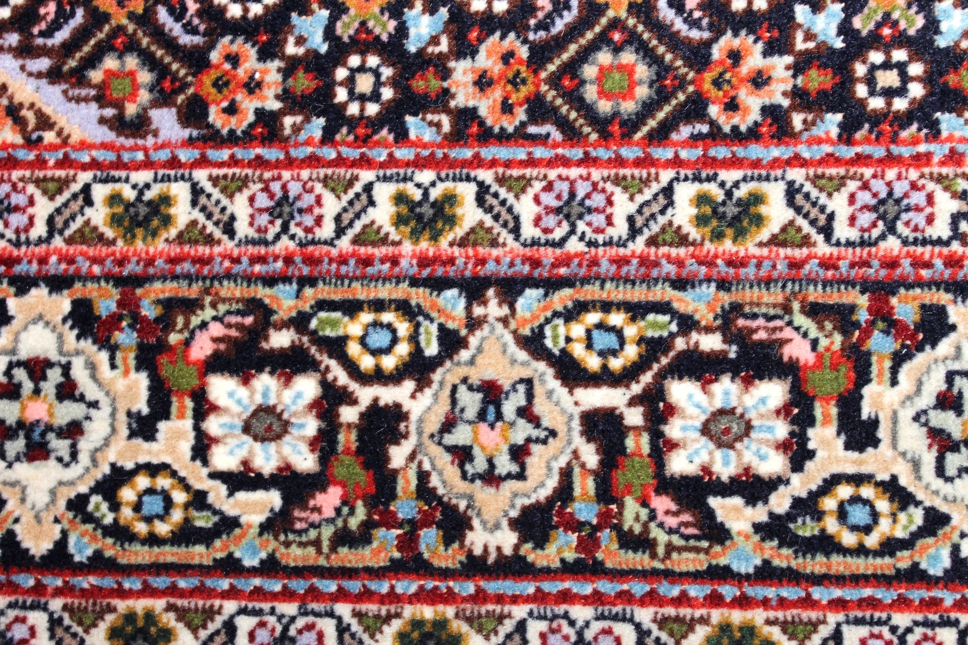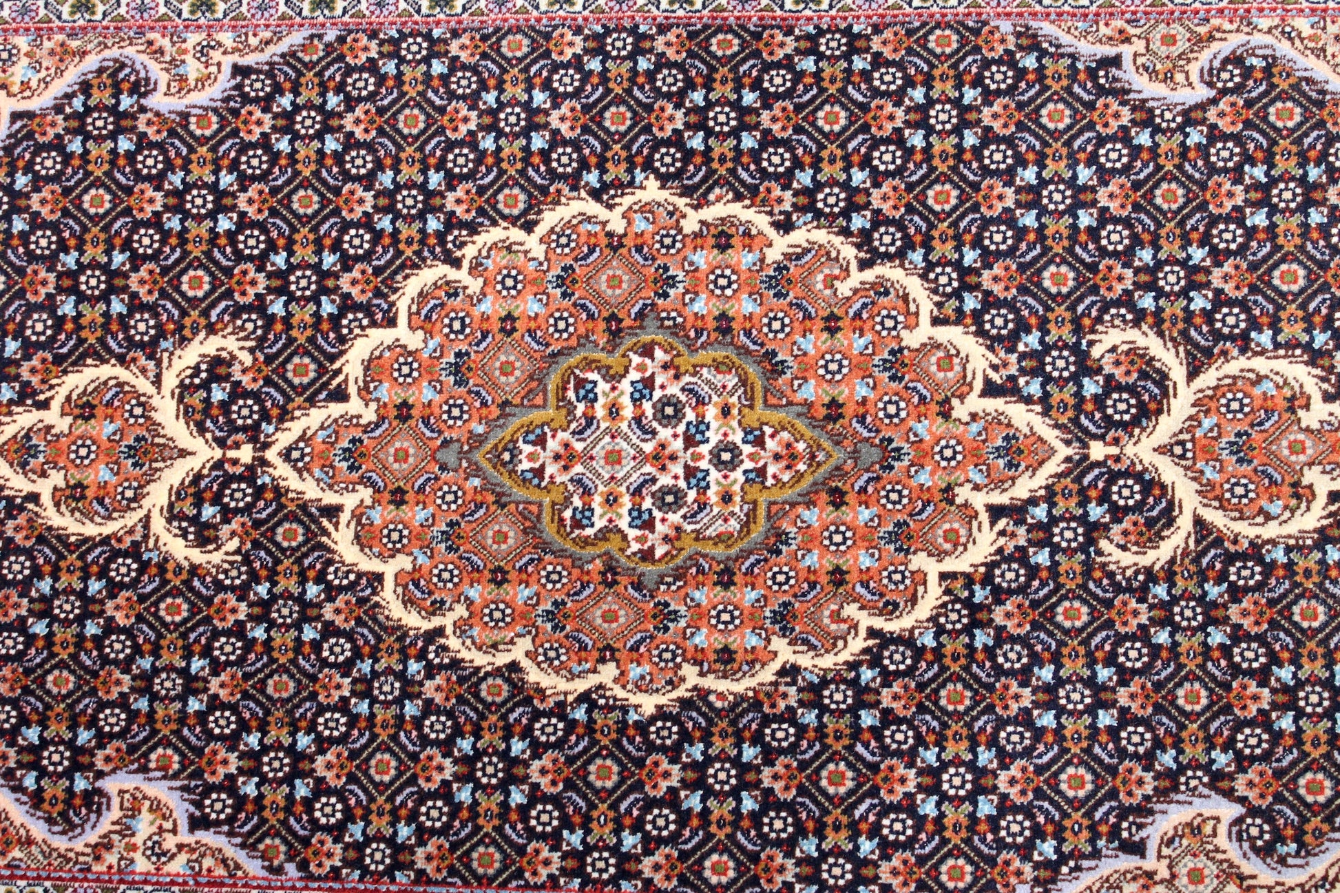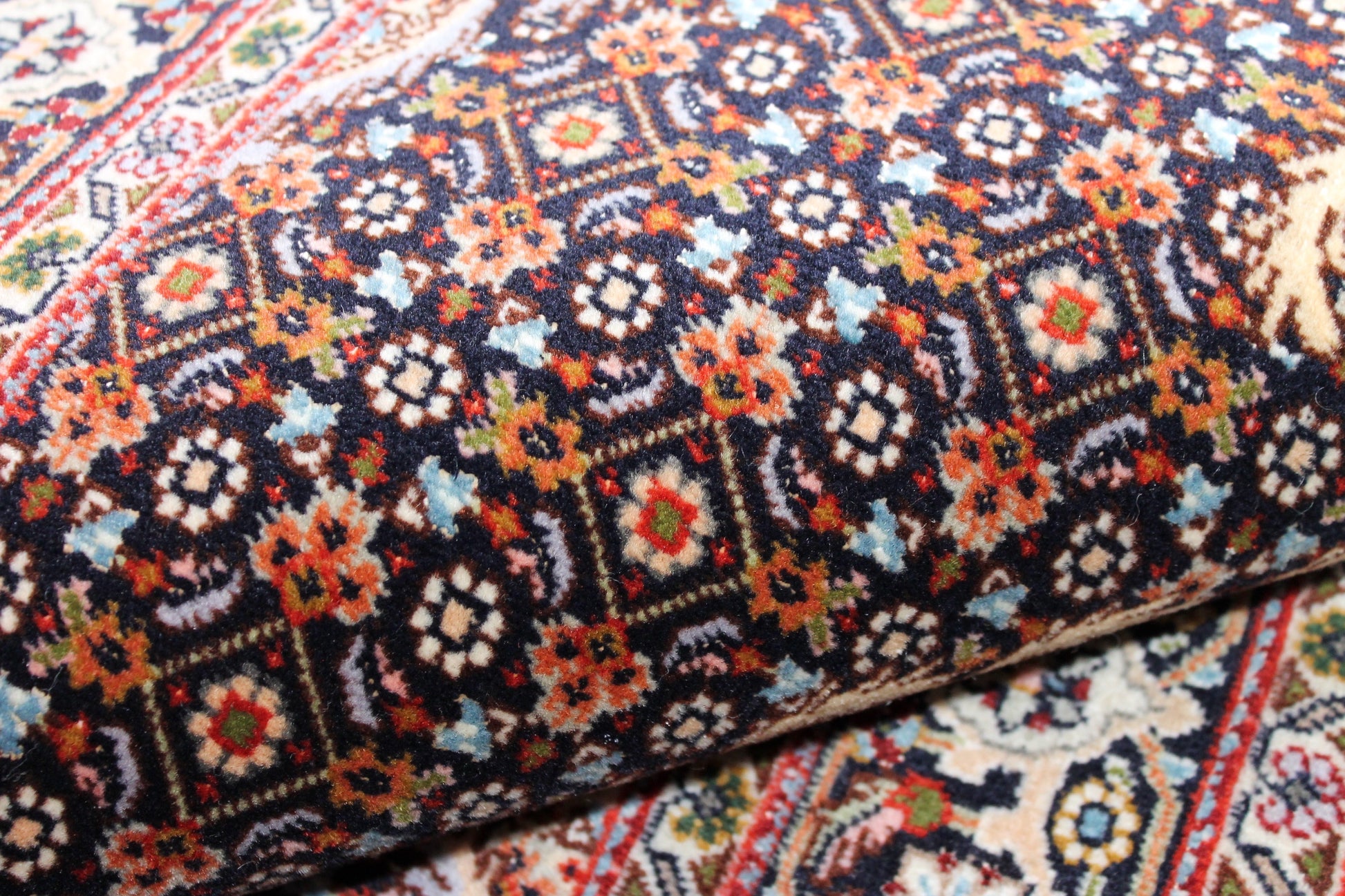 Dieser Perserteppich aus Täbriz wurde aus hochwertiger Schafwolle von Hand geknüpft. Sie ist das am häufigsten verwendete Material in der Teppichknüpfkunst und bringt eine Reihe beeindruckender Eigenschaften mit sich: