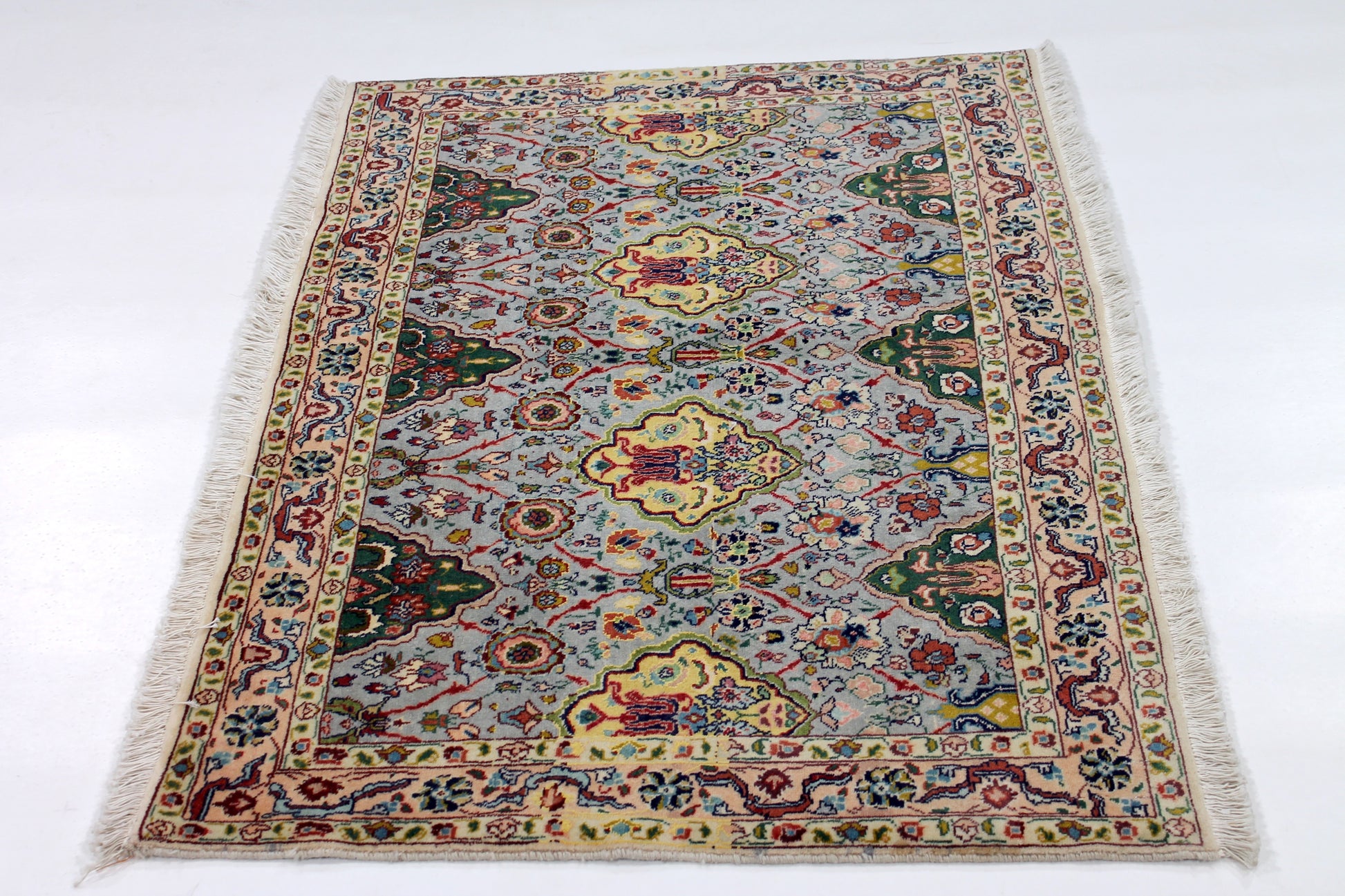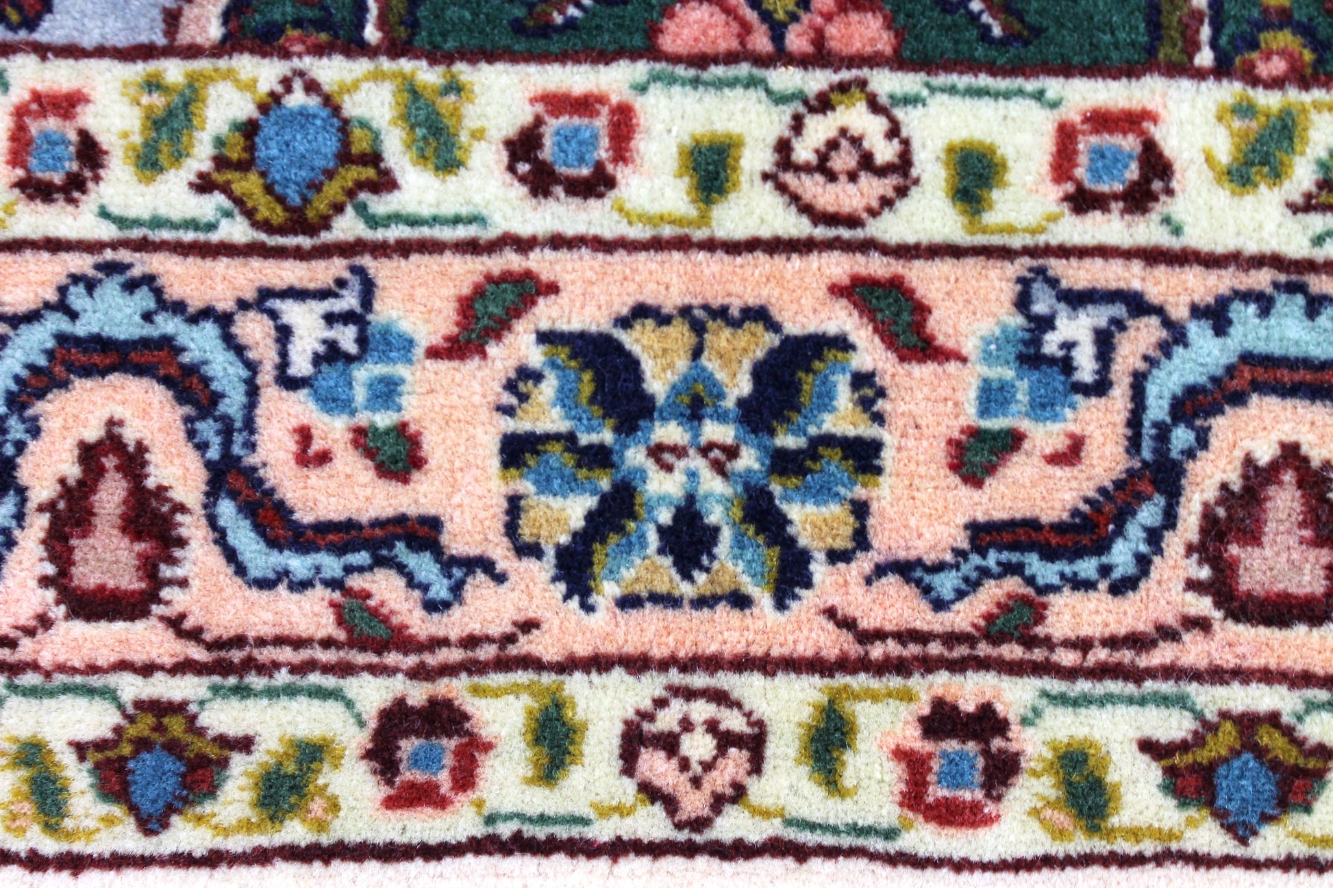 Dieser Perserteppich aus Täbriz wurde aus hochwertiger Schafwolle von Hand geknüpft. Sie ist das am häufigsten verwendete Material in der Teppichknüpfkunst und bringt eine Reihe beeindruckender Eigenschaften mit sich: