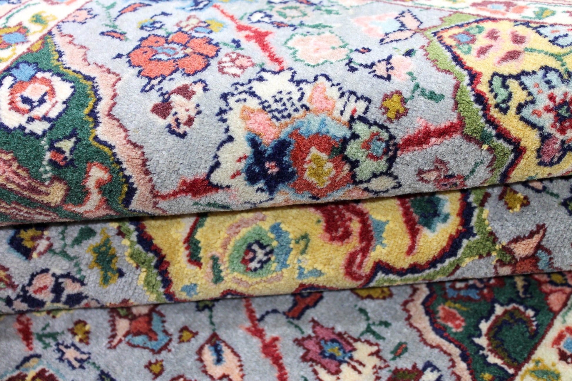 Hinweis zu den Fotos: Die Helligkeit der Teppichfarben wird je nach Blickwinkel unterschiedlich wahrgenommen.