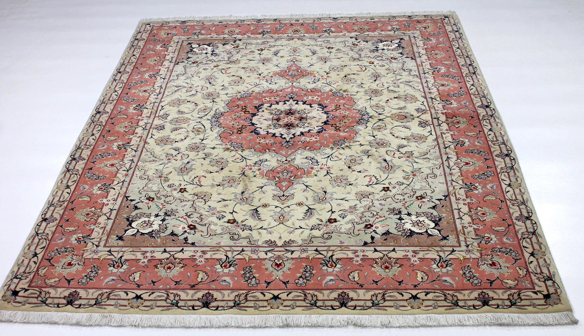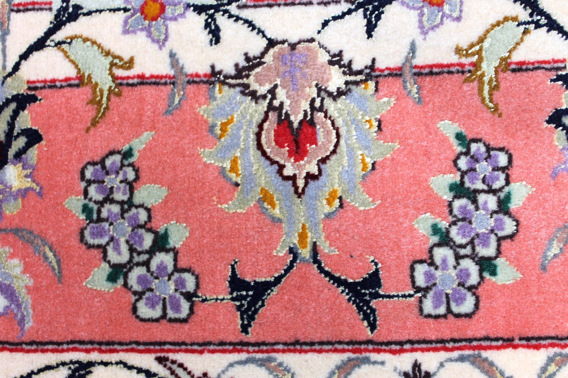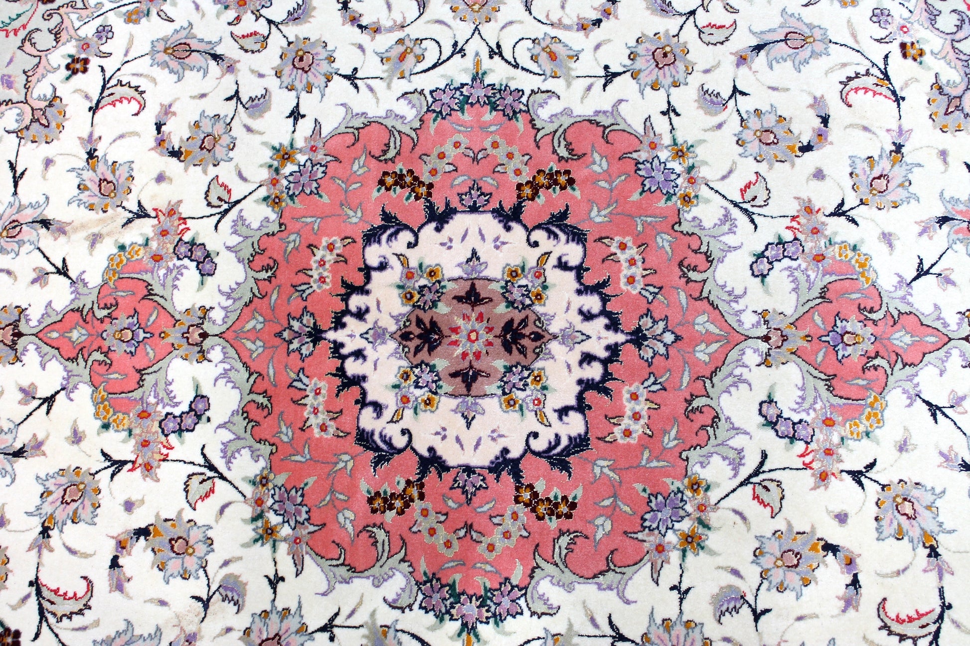 Dieser Perserteppich aus Täbriz wurde aus hochwertiger Schafwolle von Hand geknüpft. Sie ist das am häufigsten verwendete Material in der Teppichknüpfkunst und bringt eine Reihe beeindruckender Eigenschaften mit sich: