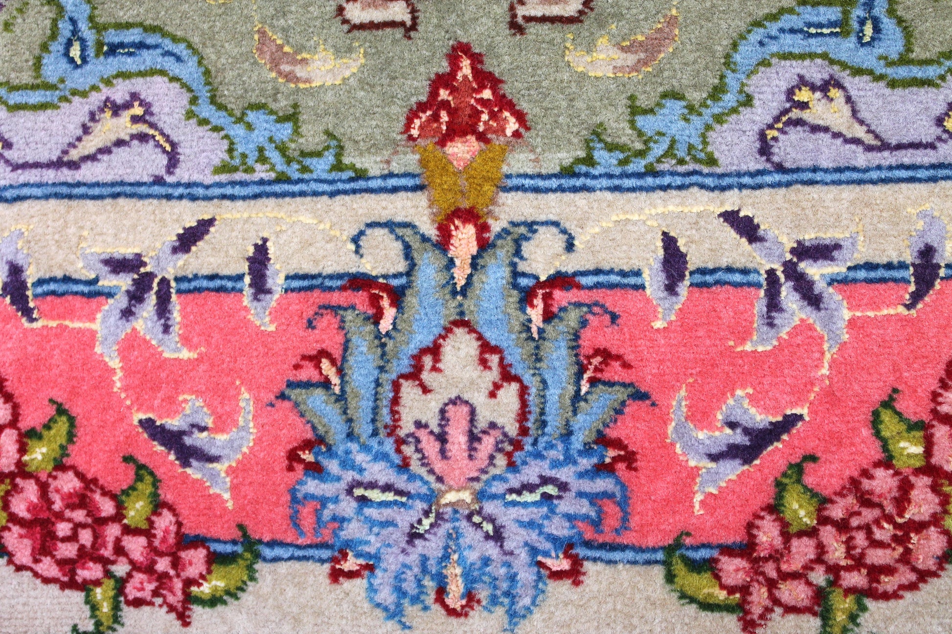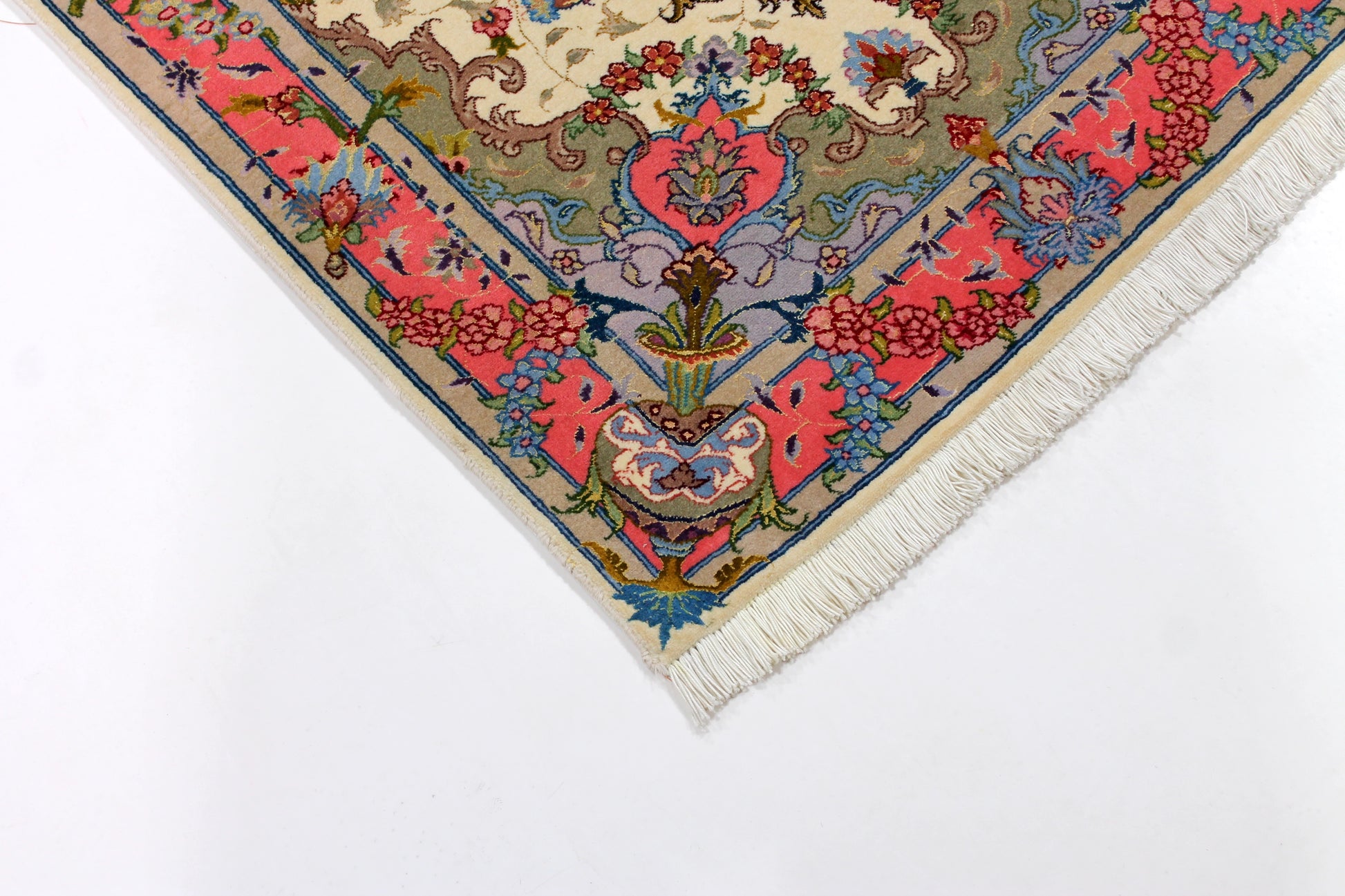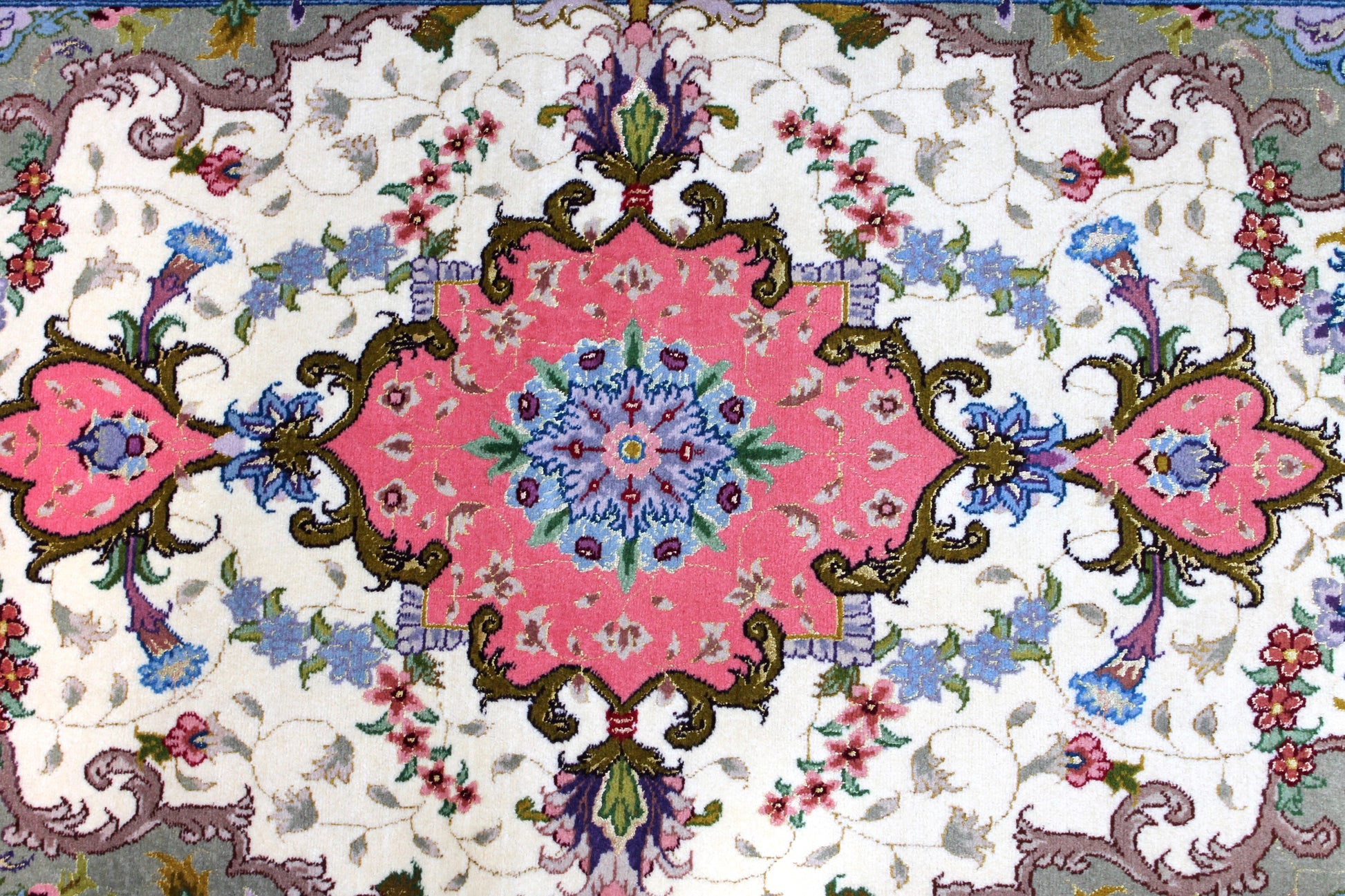 Täbriz Teppiche stammen aus der gleichnamigen Stadt im Nordwesten des Irans. Die Feinheit eines Täbriz definiert sich über den Begriff „Raj“. Er beschreibt die Anzahl der Knoten auf einer Länge von 7cm. Je höher die Raj Zahl und je mehr Seide eingearbeitet ist, desto wertvoller ist der Teppich.