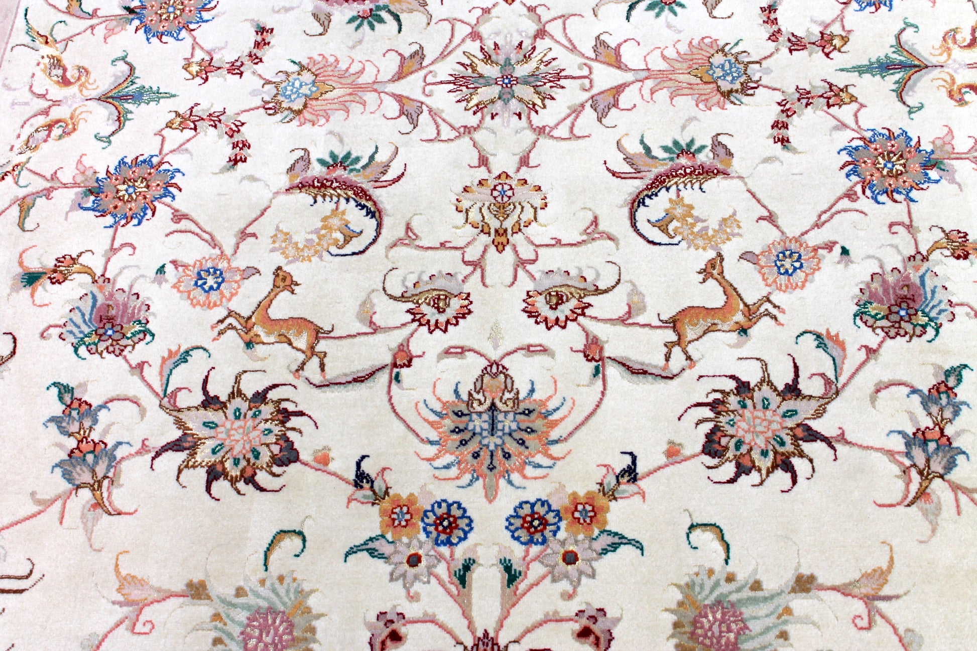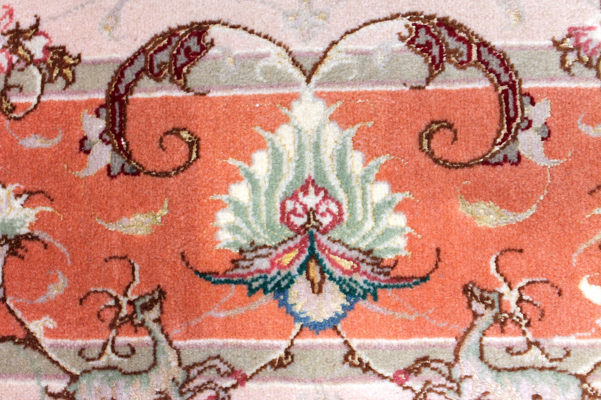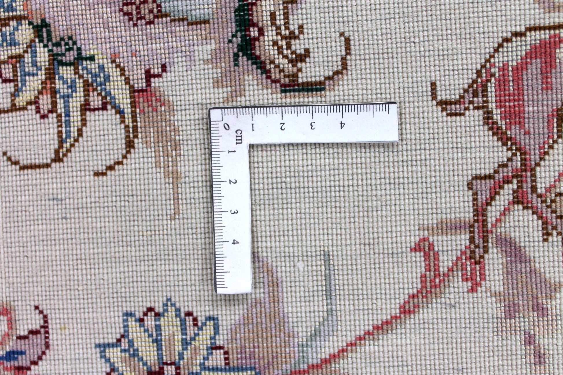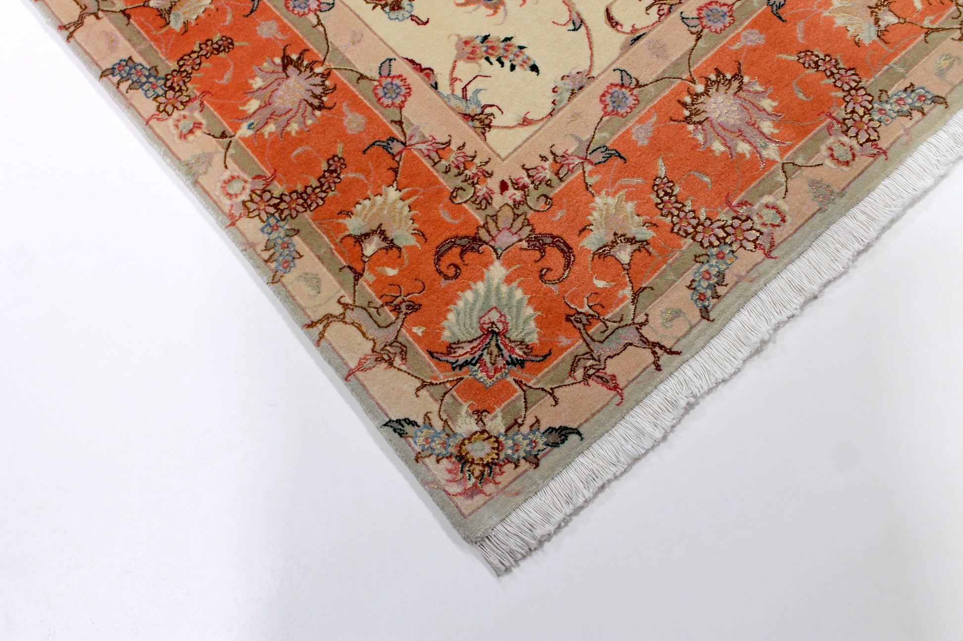 Täbriz Teppiche stammen aus der gleichnamigen Stadt im Nordwesten des Irans. Die Feinheit eines Täbriz definiert sich über den Begriff „Raj“. Er beschreibt die Anzahl der Knoten auf einer Länge von 7cm. Je höher die Raj Zahl und je mehr Seide eingearbeitet ist, desto wertvoller ist der Teppich.