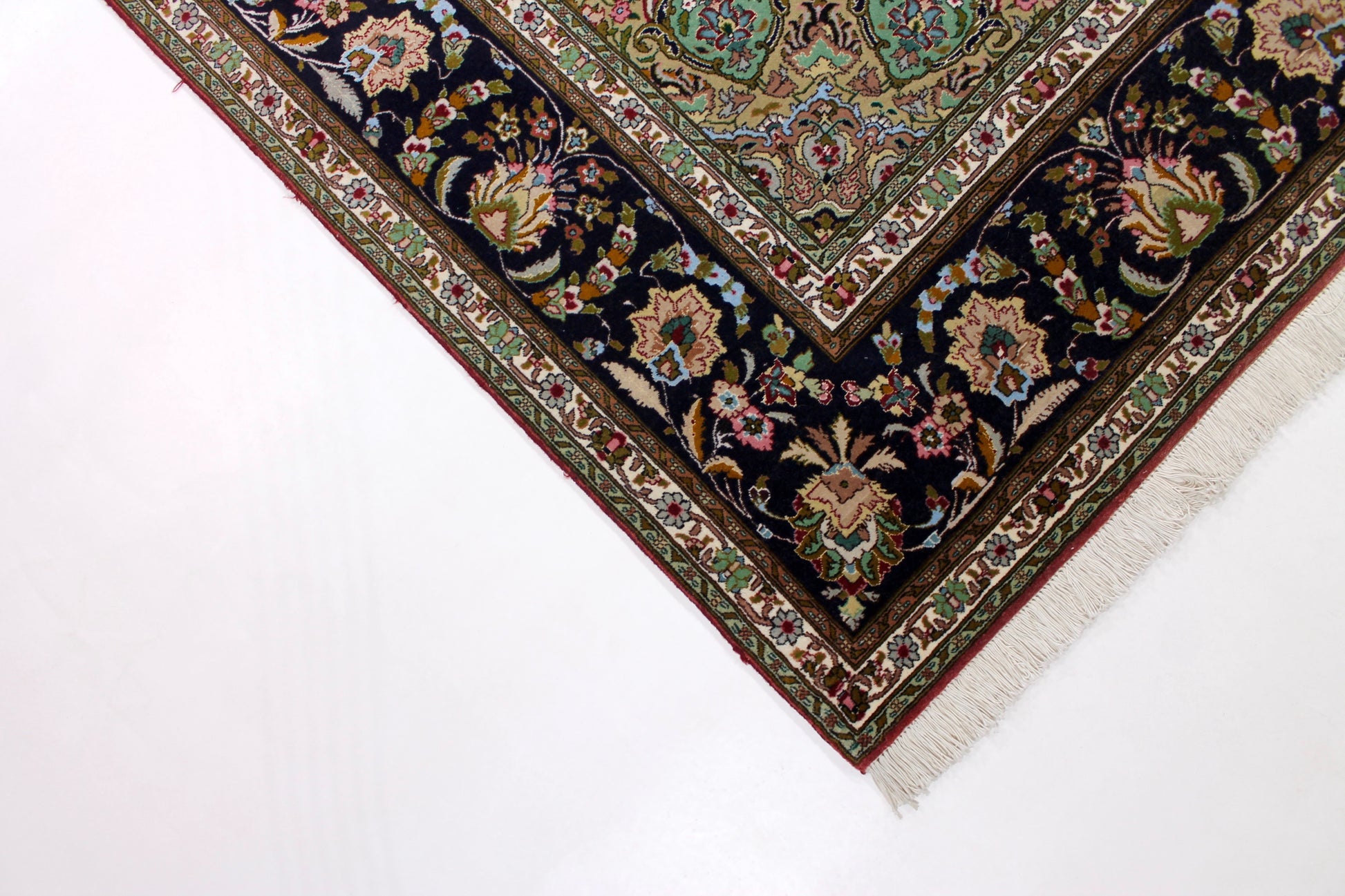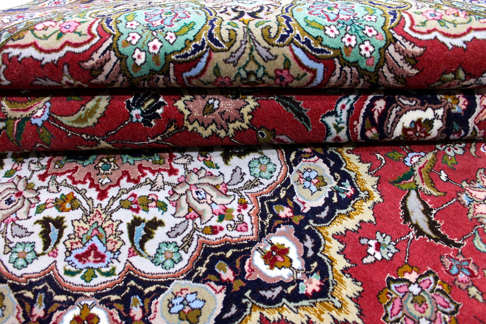 Täbriz Teppiche stammen aus der gleichnamigen Stadt im Nordwesten des Irans. Die Feinheit eines Täbriz definiert sich über den Begriff „Raj“. Er beschreibt die Anzahl der Knoten auf einer Länge von 7cm. Je höher die Raj Zahl und je mehr Seide eingearbeitet ist, desto wertvoller ist der Teppich.