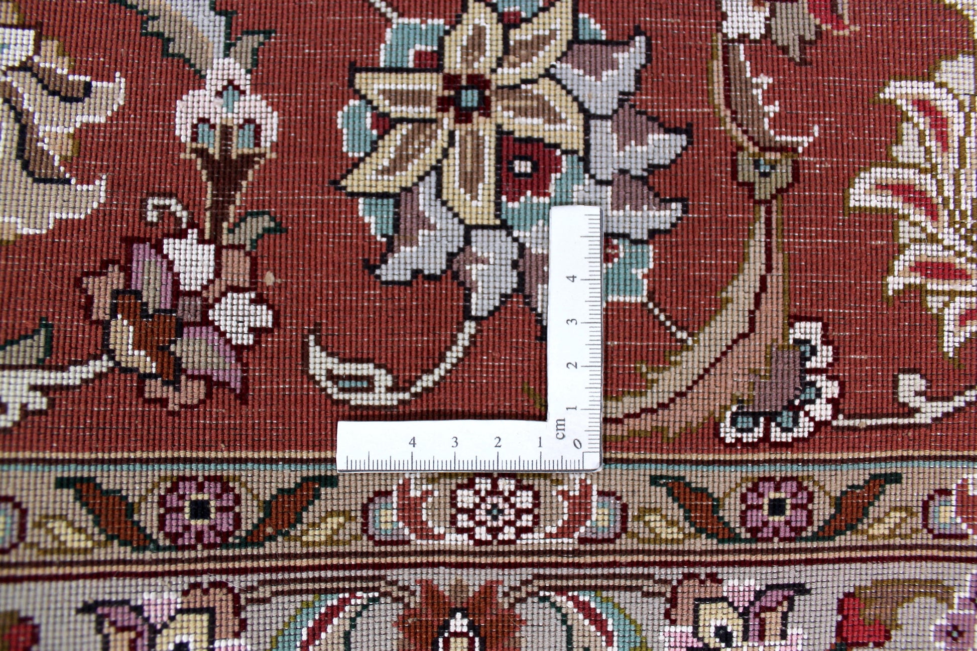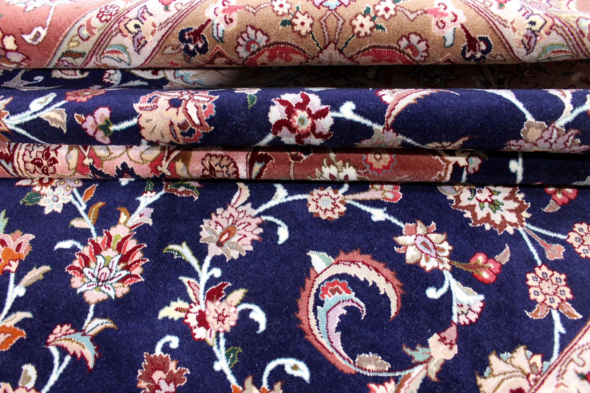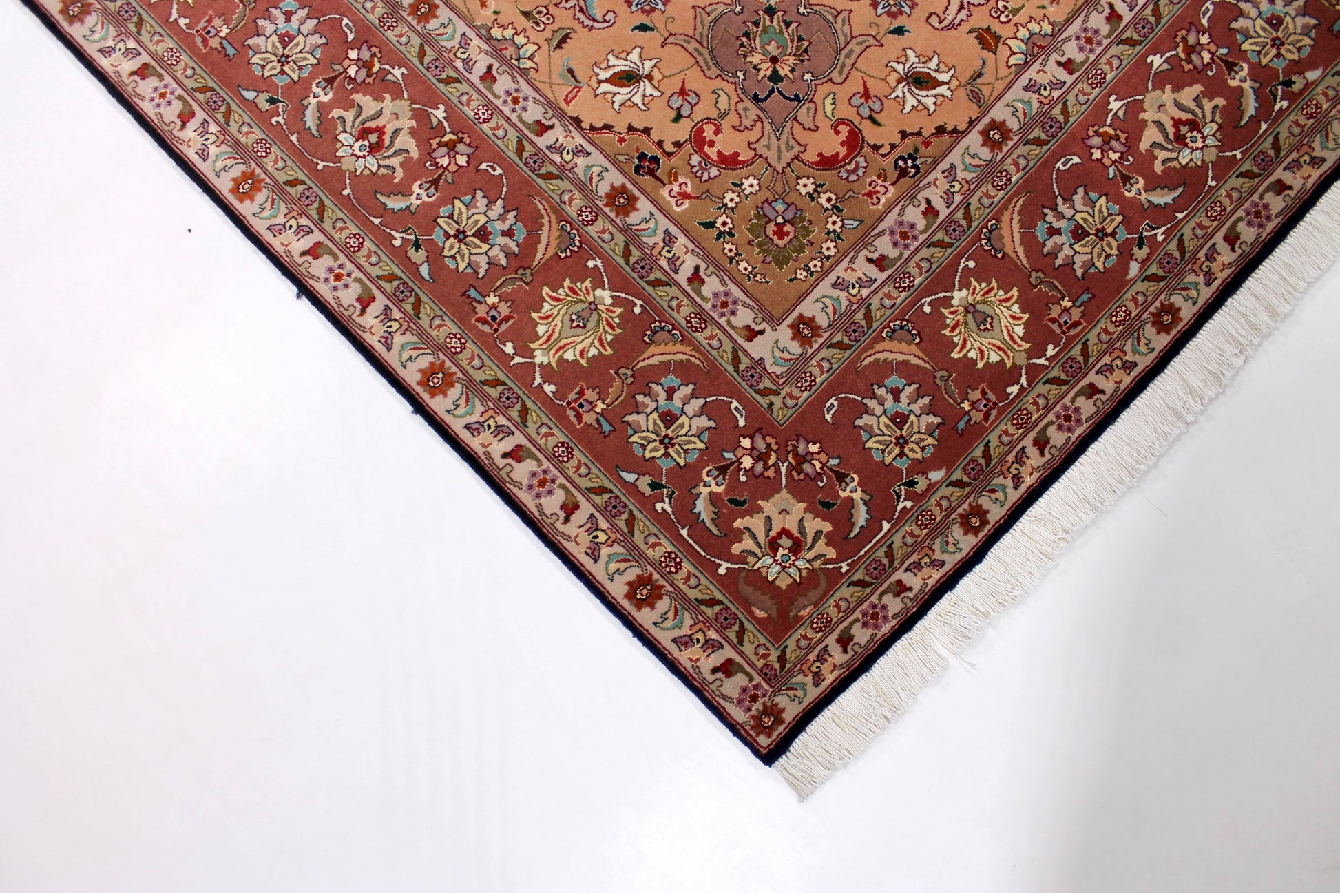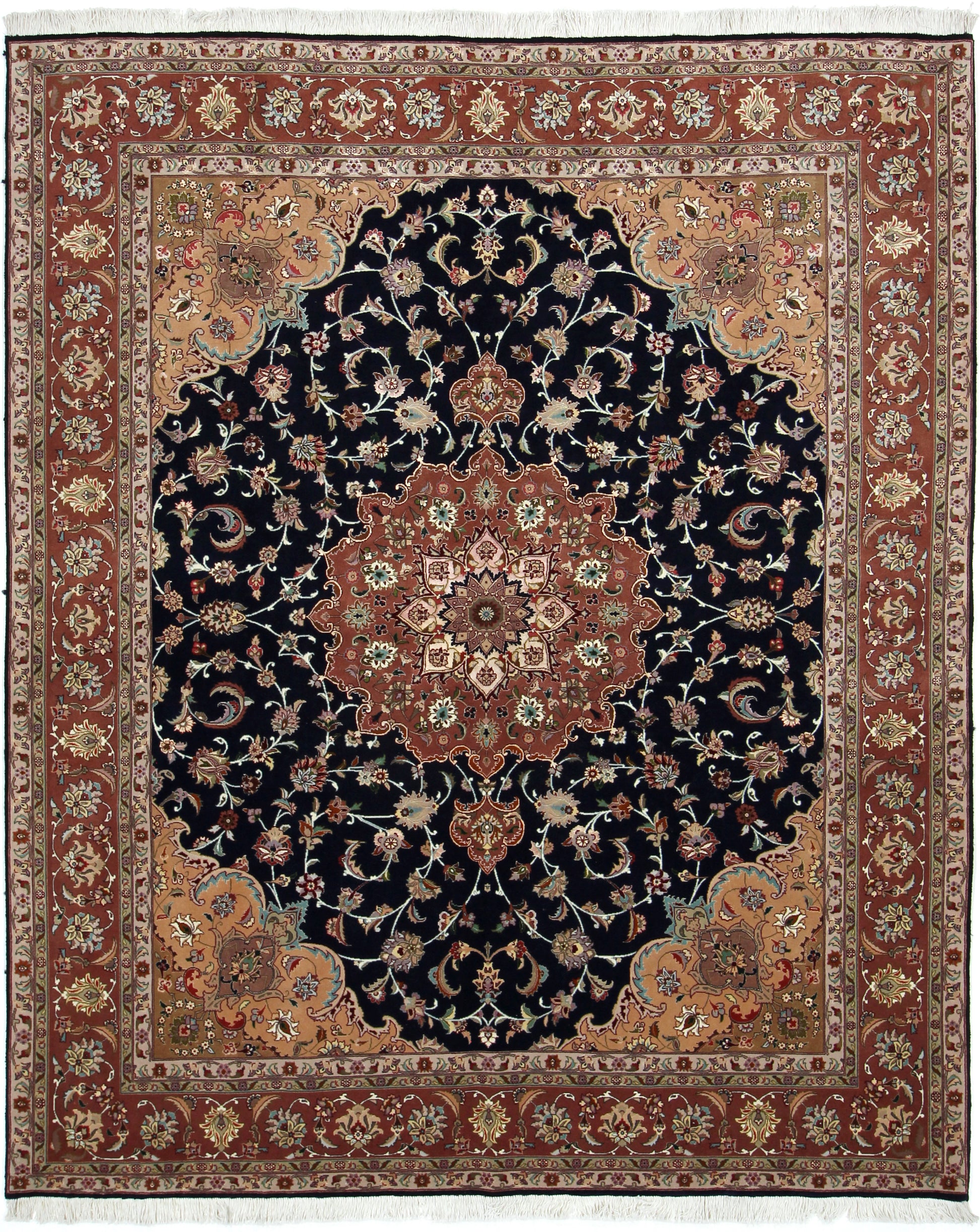 Täbriz Teppiche stammen aus der gleichnamigen Stadt im Nordwesten des Irans. Die Feinheit eines Täbriz definiert sich über den Begriff „Raj“. Er beschreibt die Anzahl der Knoten auf einer Länge von 7cm. Je höher die Raj Zahl und je mehr Seide eingearbeitet ist, desto wertvoller ist der Teppich.