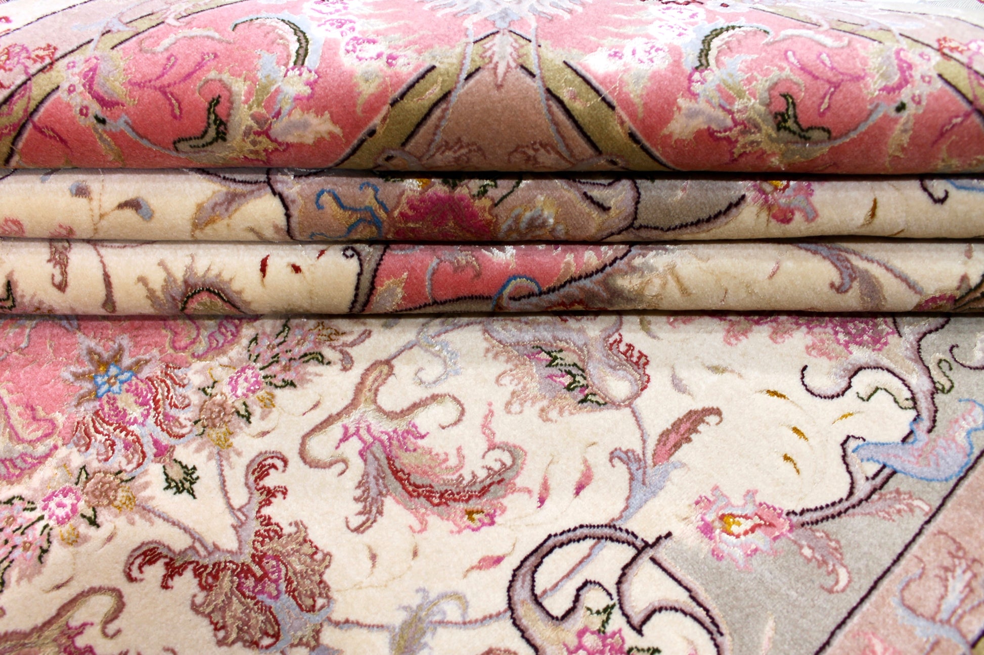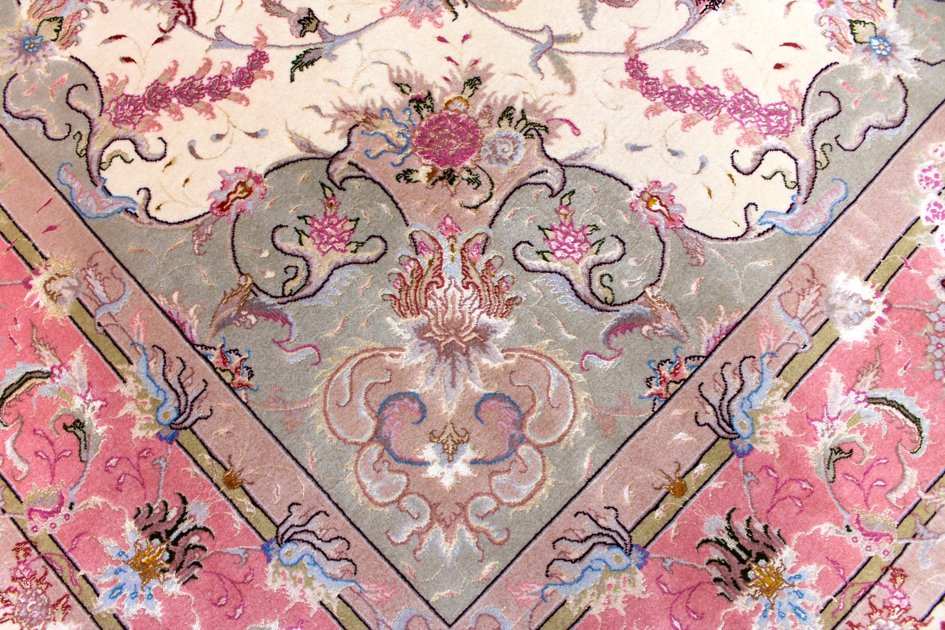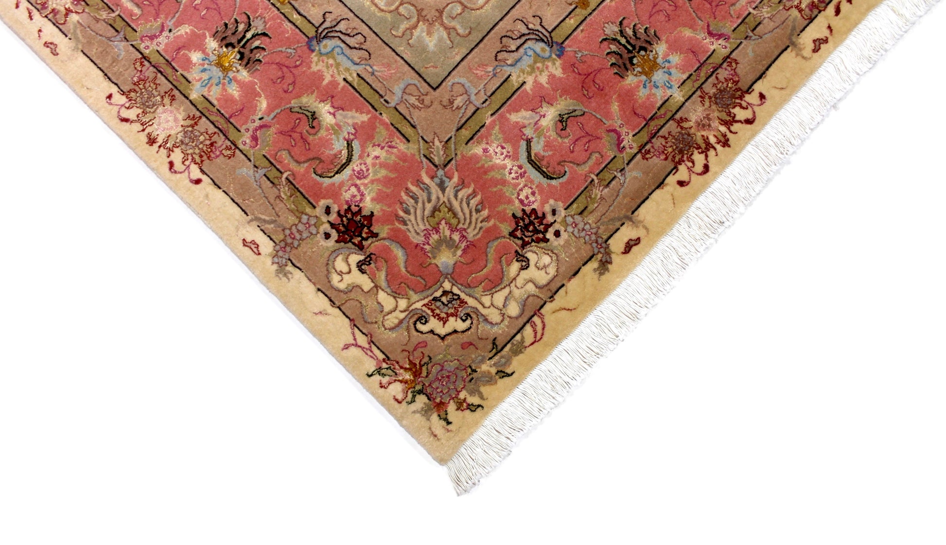 Täbriz Teppiche stammen aus der gleichnamigen Stadt im Nordwesten des Irans. Die Feinheit eines Täbriz definiert sich über den Begriff „Raj“. Er beschreibt die Anzahl der Knoten auf einer Länge von 7cm. Je höher die Raj Zahl und je mehr Seide eingearbeitet ist, desto wertvoller ist der Teppich.