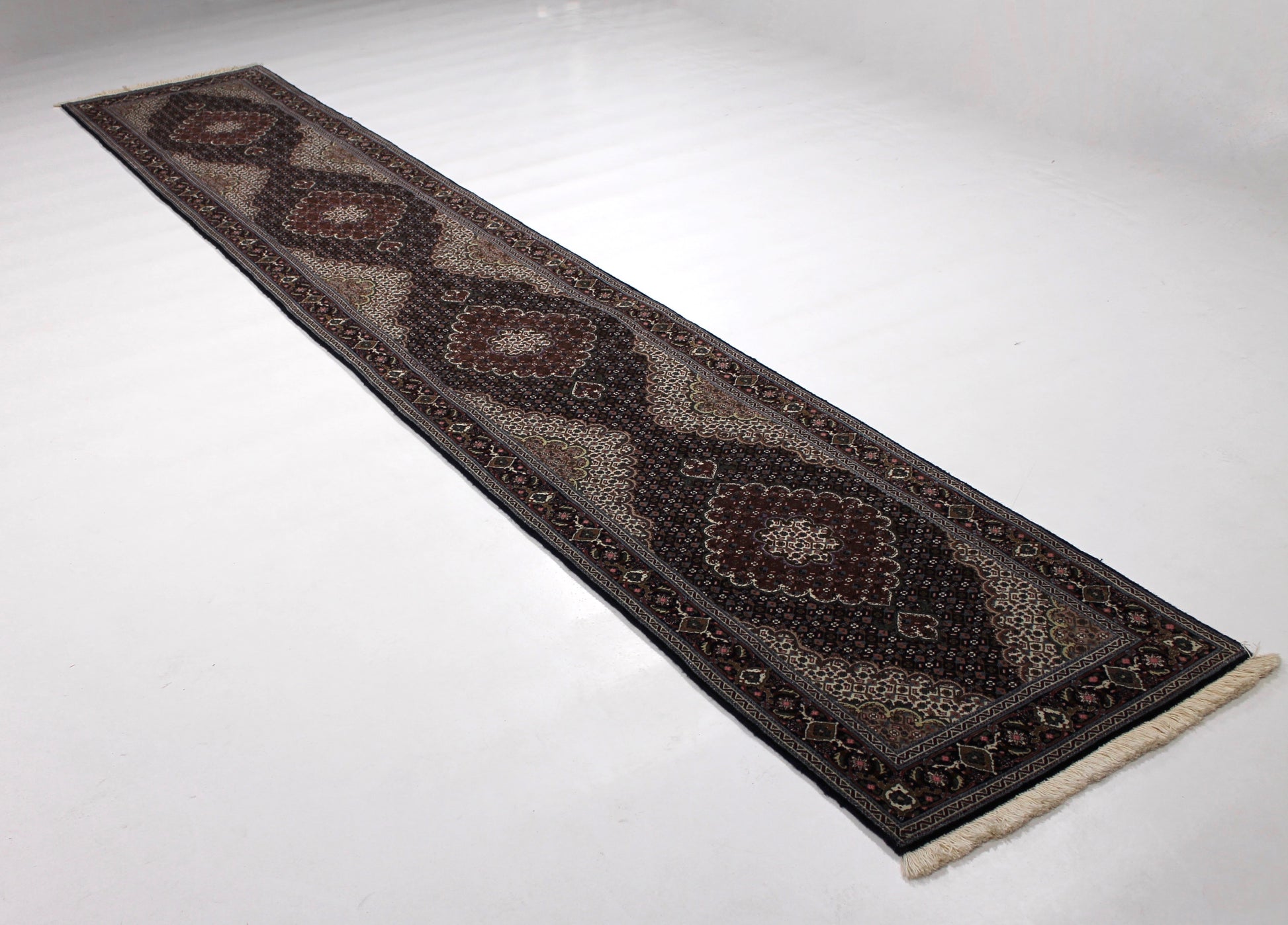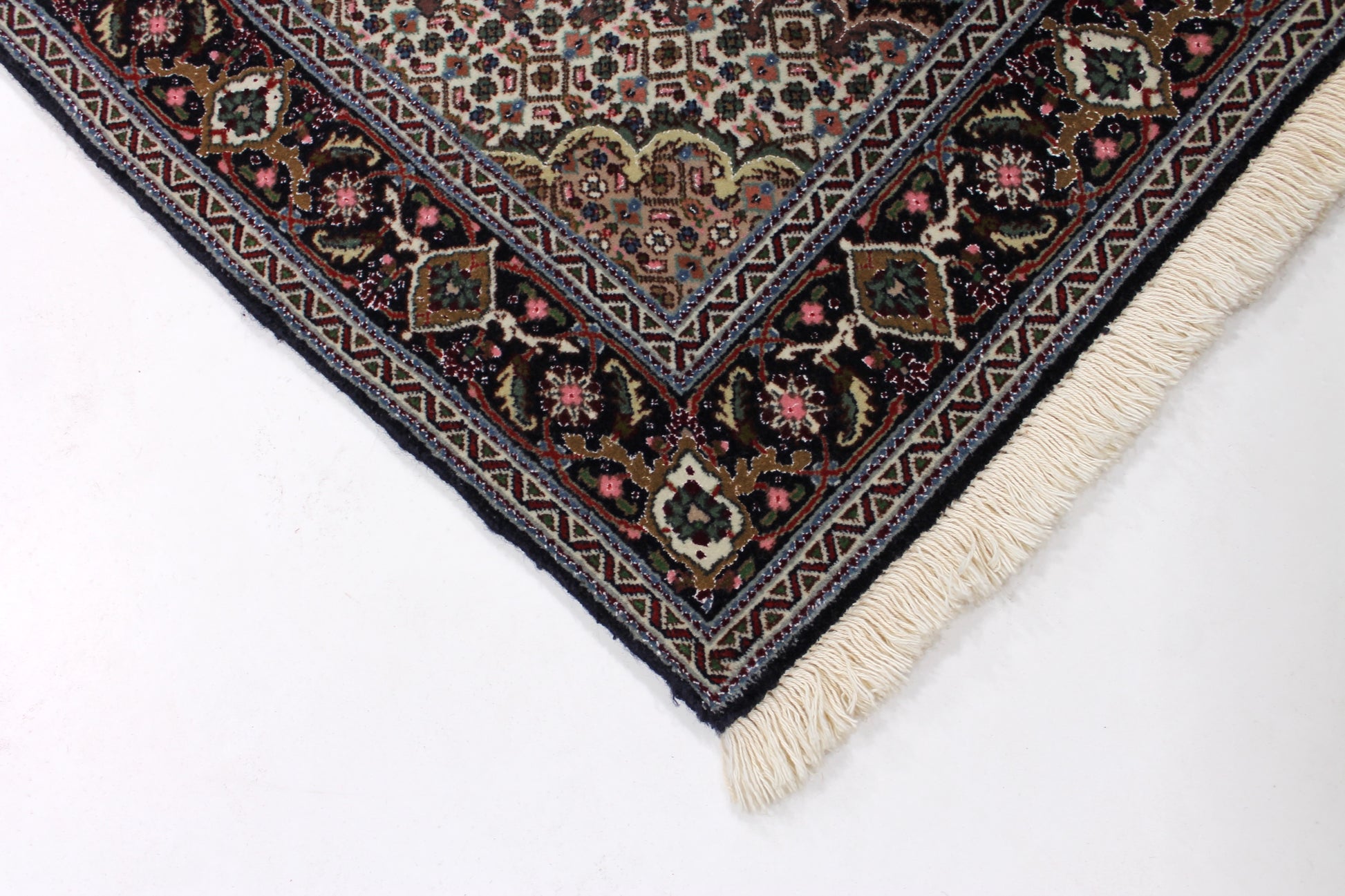 Täbriz Teppiche stammen aus der gleichnamigen Stadt im Nordwesten des Irans. Die Feinheit eines Täbriz definiert sich über den Begriff „Raj“. Er beschreibt die Anzahl der Knoten auf einer Länge von 7cm. Je höher die Raj Zahl und je mehr Seide eingearbeitet ist, desto wertvoller ist der Teppich.