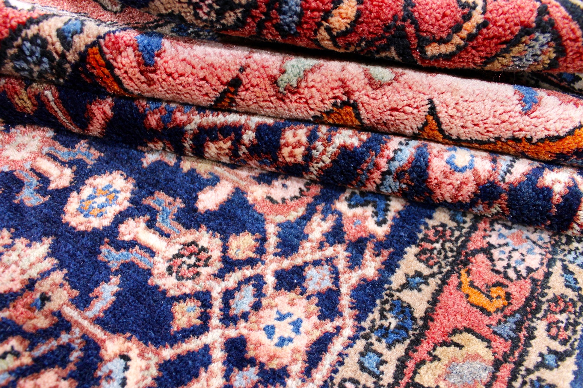 Dieser aus der Region Sarough stammende Perserteppich wurde aus hochwertiger Schafwolle von Hand geknüpft. Sie ist das am häufigsten verwendete Material in der Teppichknüpfkunst und bringt eine Reihe beeindruckender Eigenschaften mit sich: